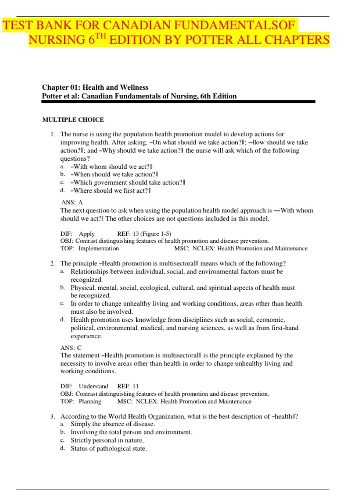 , TEST BANK FOR CANADIAN FUNDAMENTALSOF