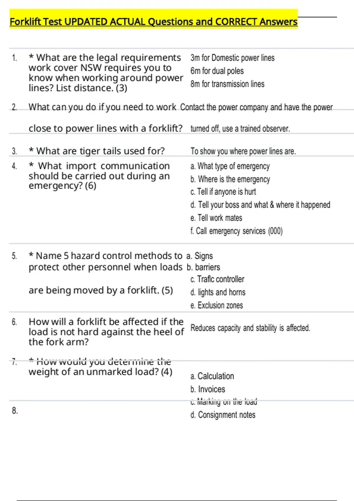 weight of an unmarked load? (4) a. Calculation