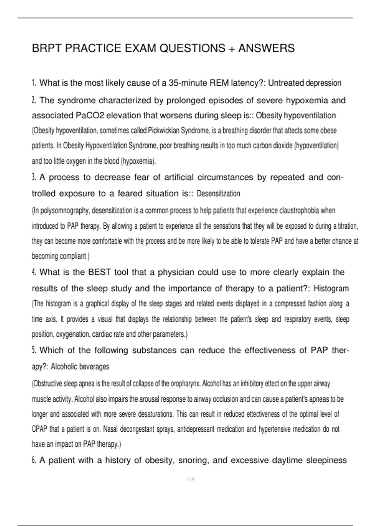 BRPT PRACTICE EXAM QUESTIONS + ANSWERS