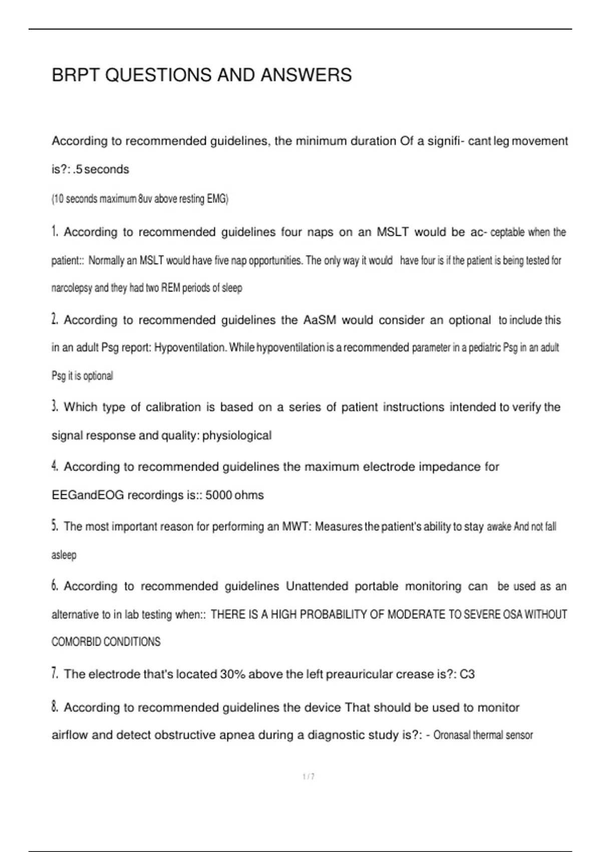 1. According to recommended guidelines four naps on an MSLT would be ac- ceptable when the