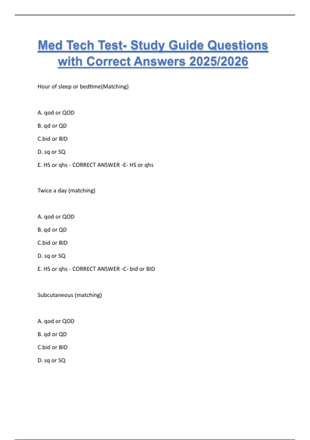 E. HS or qhs - CORRECT ANSWER -B- qd or QD