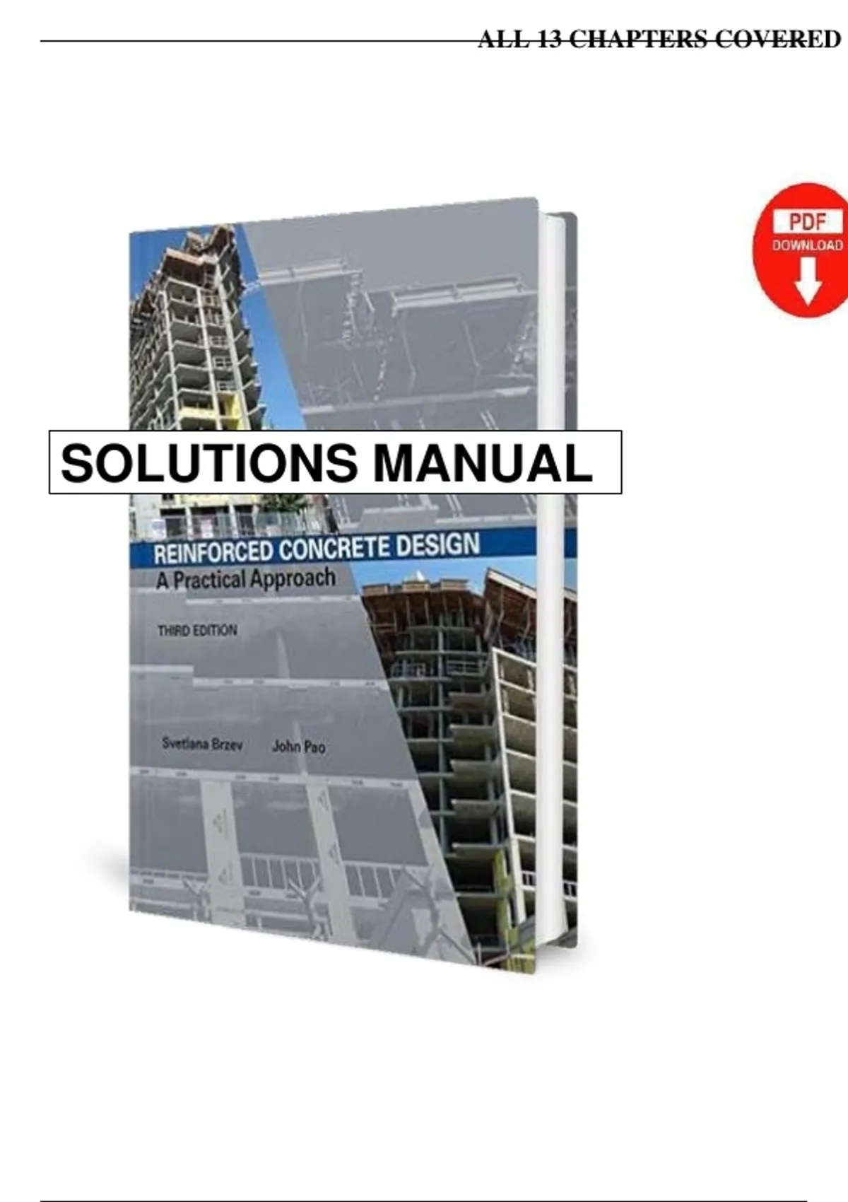 Instant PDF Download – Get the Solution Manual for Reinforced Concrete Design: A Practical Approach (3rd Edition) by Svetlana Brzev and Patrick Paultre, the ultimate companion for mastering concrete design principles and applications. This expert-verified manual provides step-by-step, detailed solutions to all textbook problems, covering topics such as flexural design, shear strength, column design, serviceability, and seismic detailing. Perfect for civil and structural engineering students, it bridges theoretical concepts with real-world design practices in accordance with ACI and CSA standards. Updated for 2025–2026, this complete guide ensures clarity, accuracy, and confidence in reinforced concrete analysis and design. #ReinforcedConcreteDesign #SolutionManual #SvetlanaBrzev #PatrickPaultre #CivilEngineering #StructuralEngineering #ConcreteStructures #ACI #CSAStandards #InstantDownload