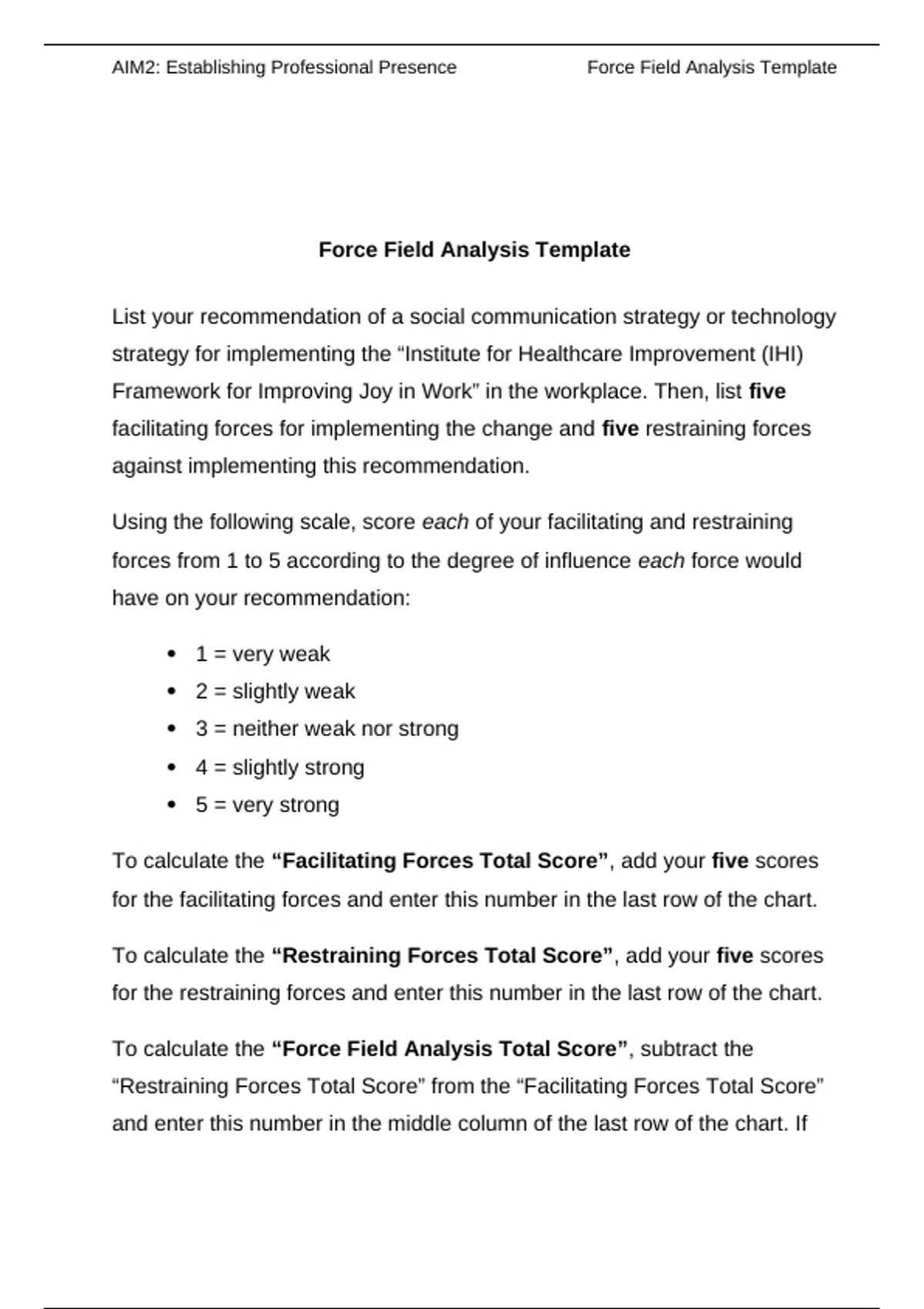 AIM2: Establishing Professional Presence Force Field Analysis Template