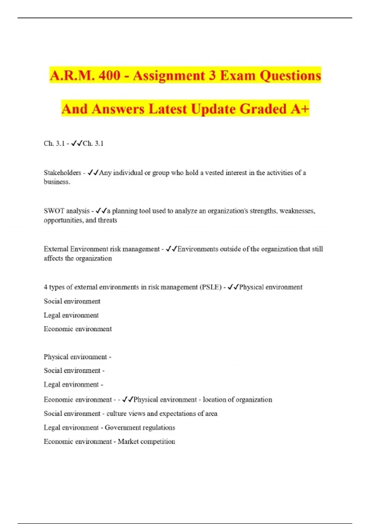 A.R.M. 400 - Assignment 3 Exam Questions And Answers Latest Update Graded A+