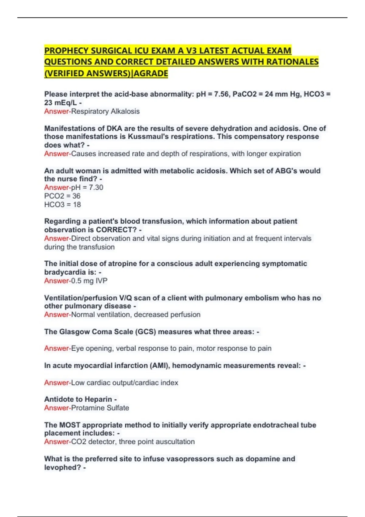 QUESTIONS AND CORRECT DETAILED ANSWERS WITH RATIONALES
