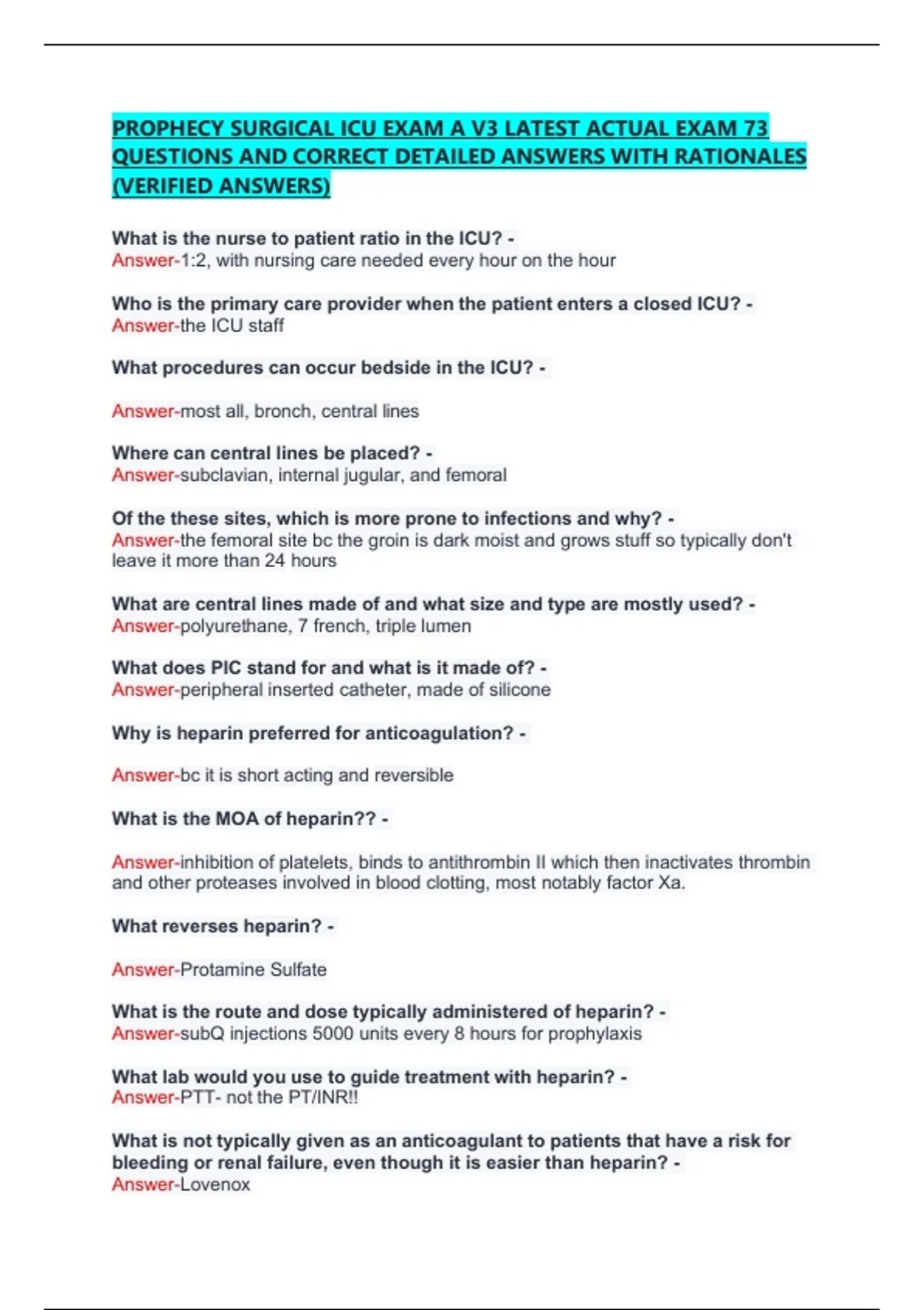QUESTIONS AND CORRECT DETAILED ANSWERS WITH RATIONALES