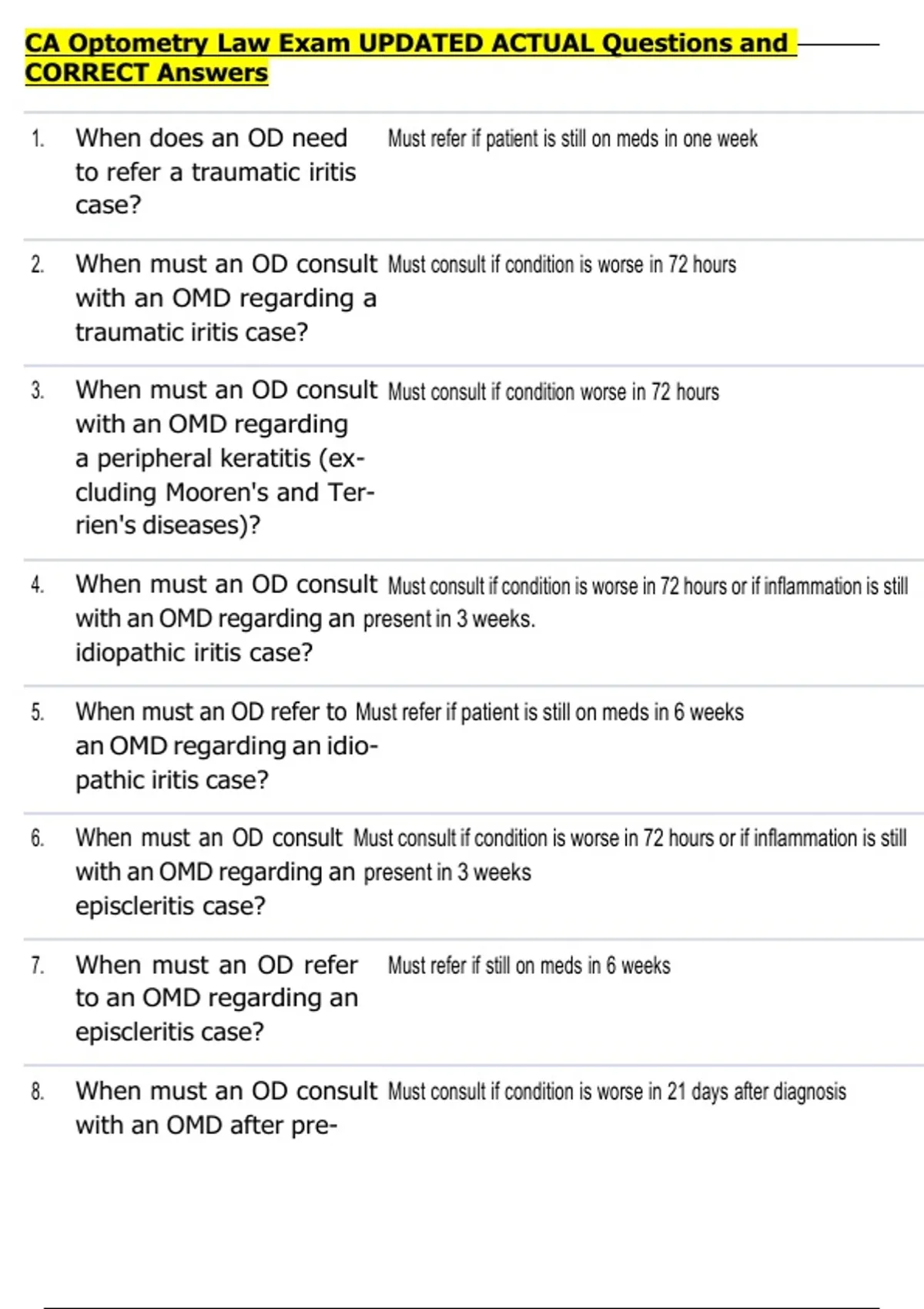 CA Optometry Law Exam UPDATED ACTUAL Questions and