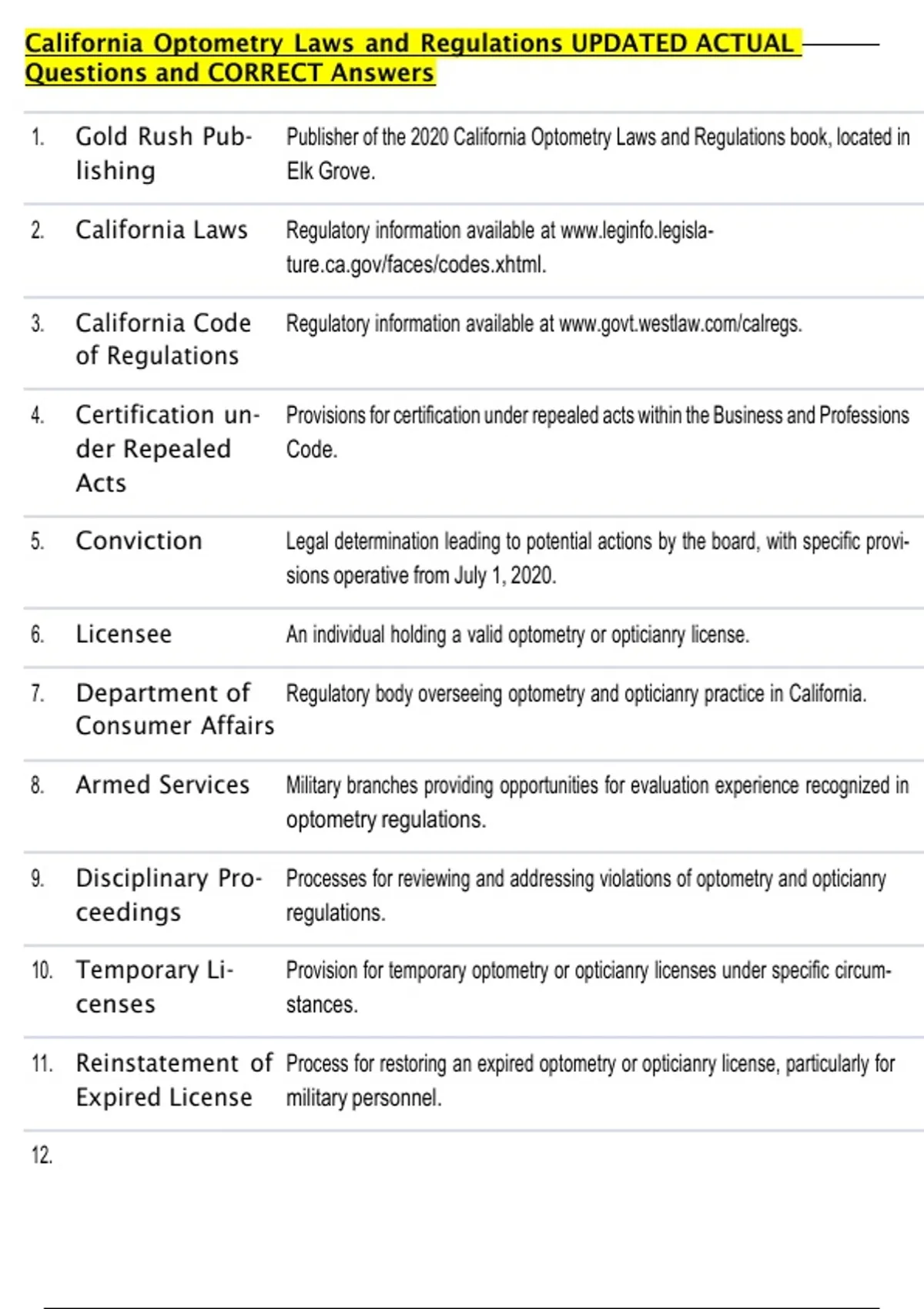 California Optometry Laws and Regulations UPDATED ACTUAL Questions and CORRECT Answers