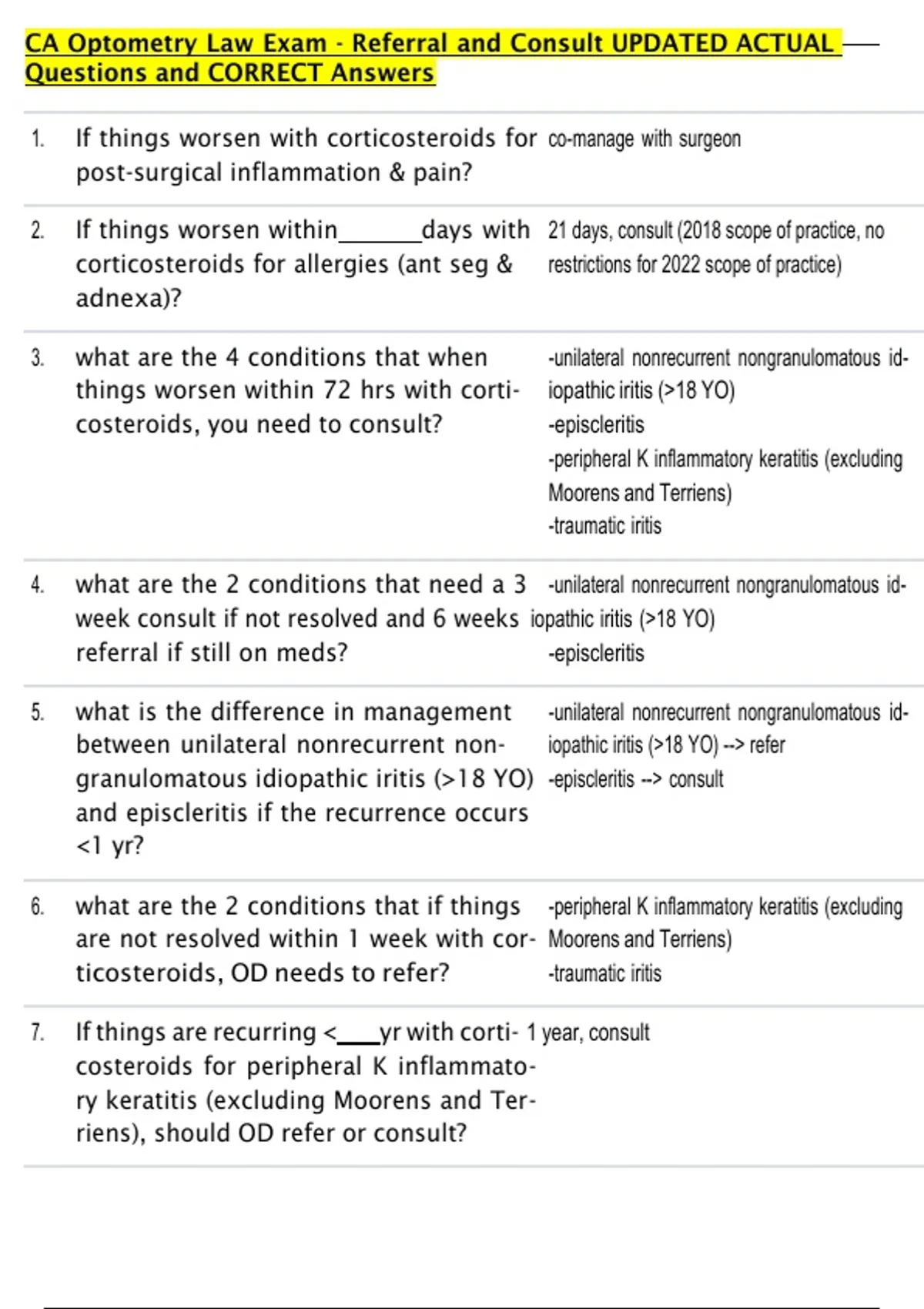 CA Optometry Law Exam - Referral and Consult UPDATED ACTUAL Questions and CORRECT Answers