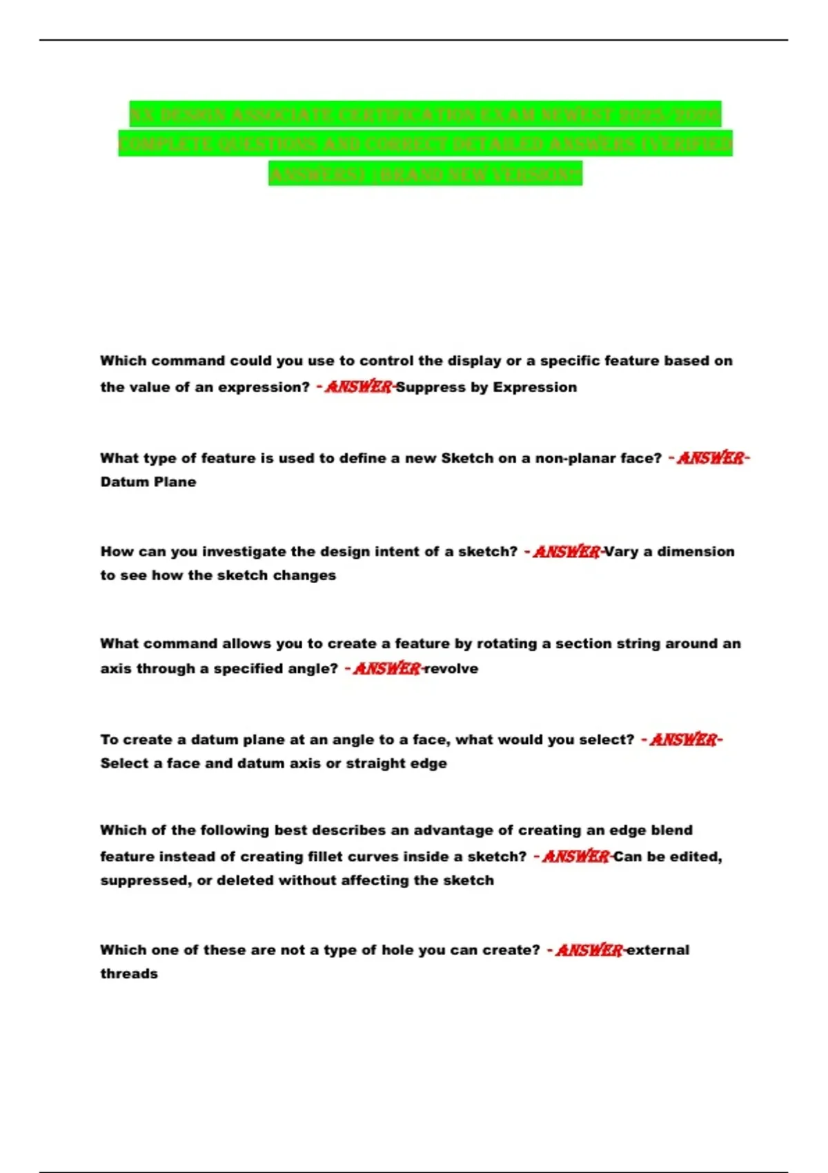 NX DESIGN ASSOCIATE CERTIFICATION EXAM NEWEST 2025/2026 COMPLETE QUESTIONS AND CORRECT DETAILED ANSWERS (VERIFIED ANSWERS) |BRAND NEW VERSION!!