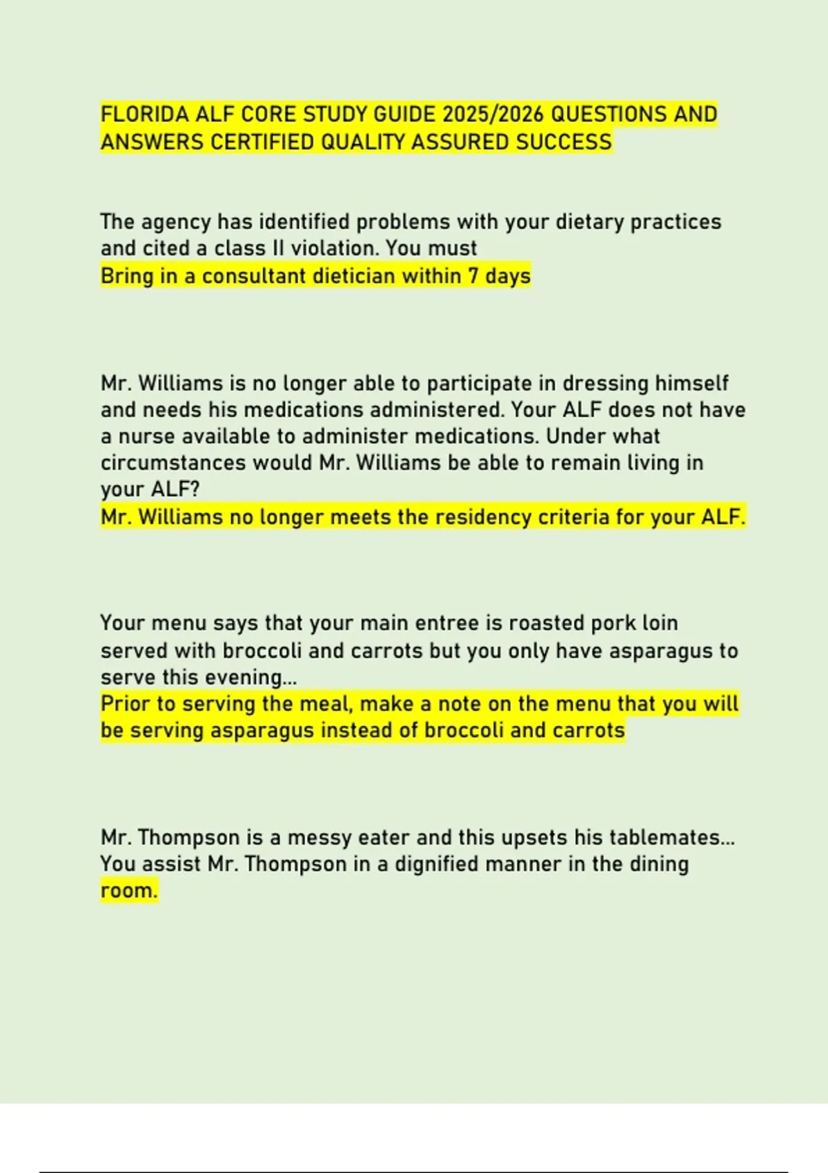 Mr. Williams no longer meets the residency criteria for your ALF.