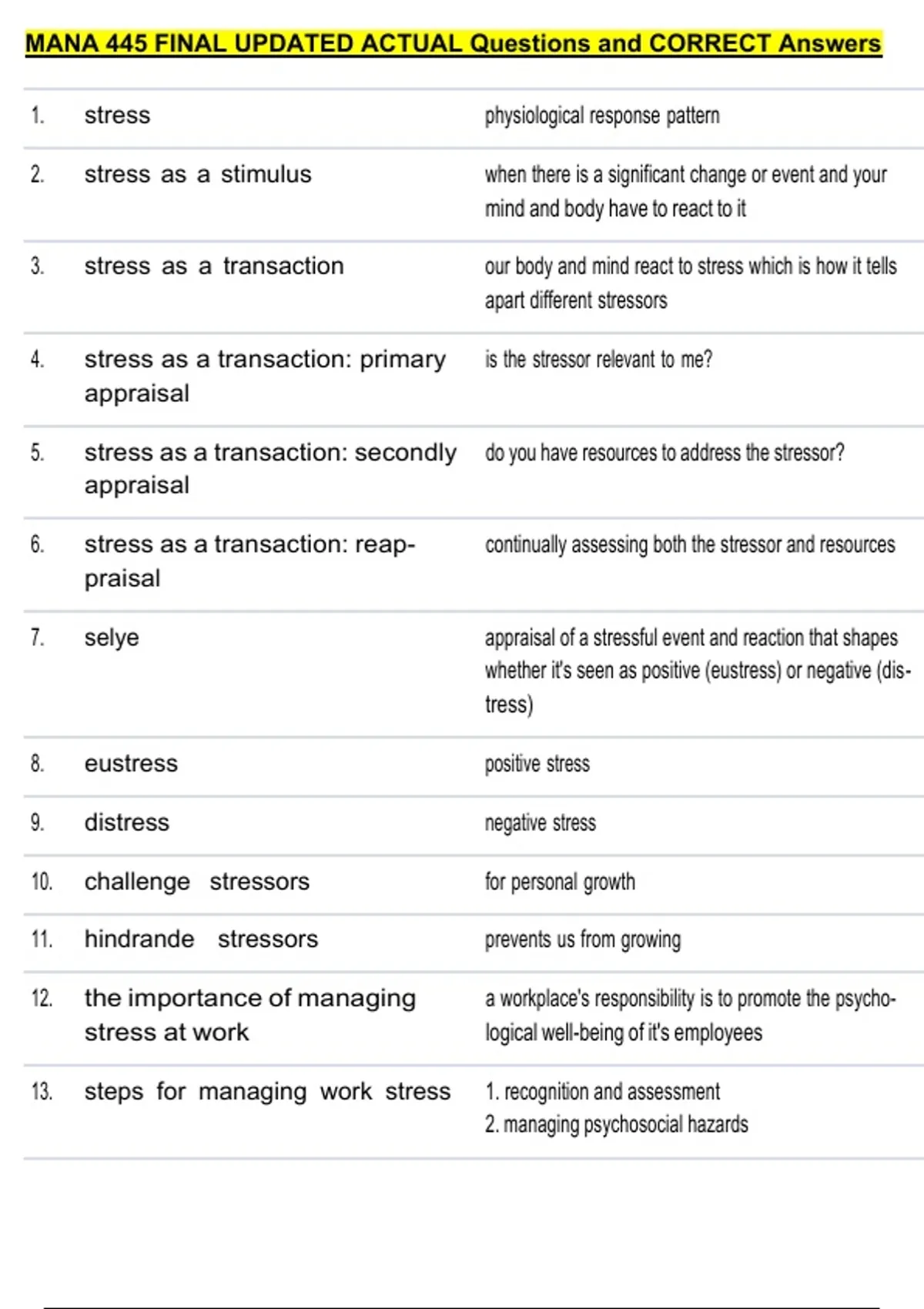 MANA 445 FINAL UPDATED ACTUAL Questions and CORRECT Answers