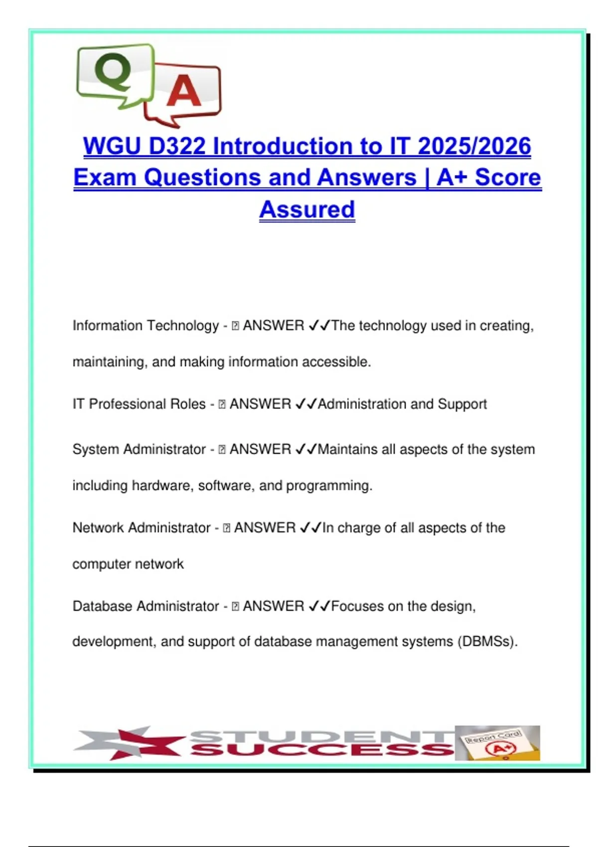 IT Professional Roles - 🧠 ANSWER ✔✔Administration and Support