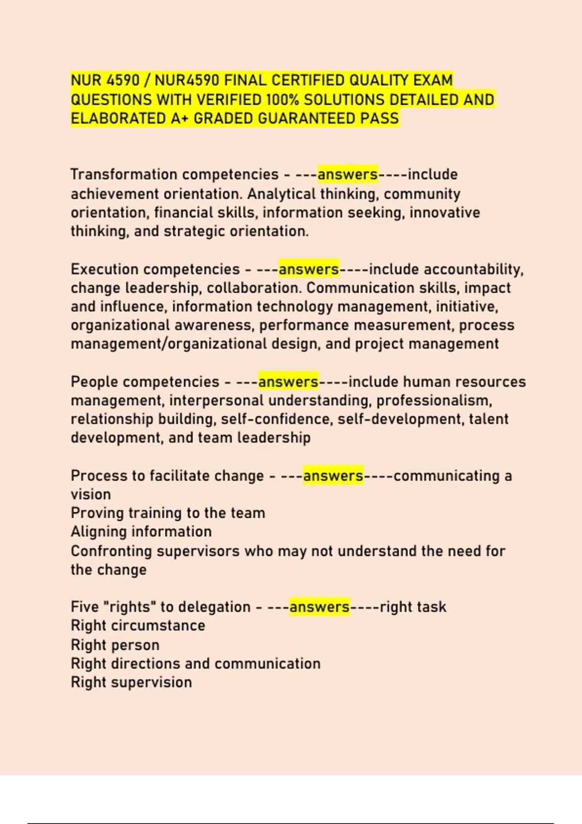 NUR 4590 / NUR4590 FINAL CERTIFIED QUALITY EXAM QUESTIONS WITH VERIFIED 100% SOLUTIONS DETAILED AND ELABORATED A+ GRADED GUARANTEED PASS
