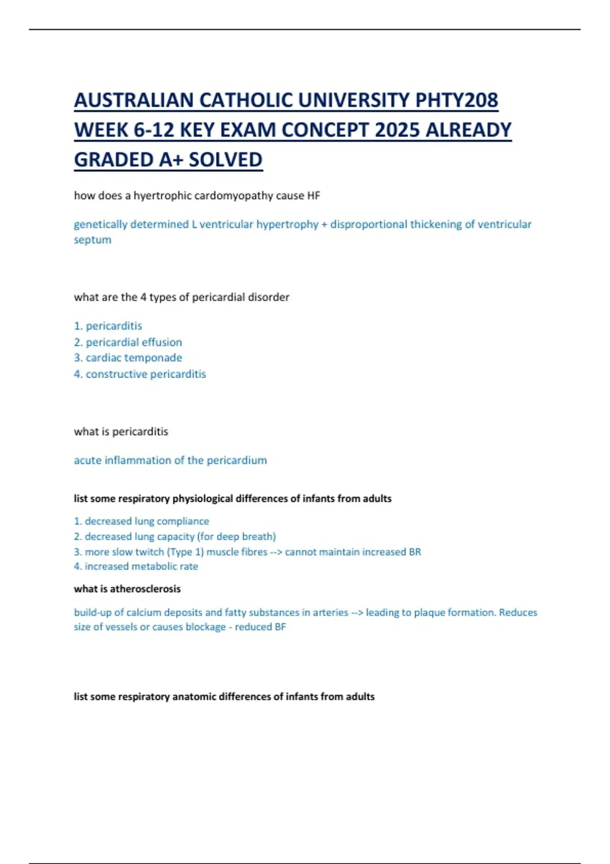 AUSTRALIAN CATHOLIC UNIVERSITY PHTY208 WEEK 6-12 KEY EXAM CONCEPT 2025 ALREADY GRADED A+ SOLVED
