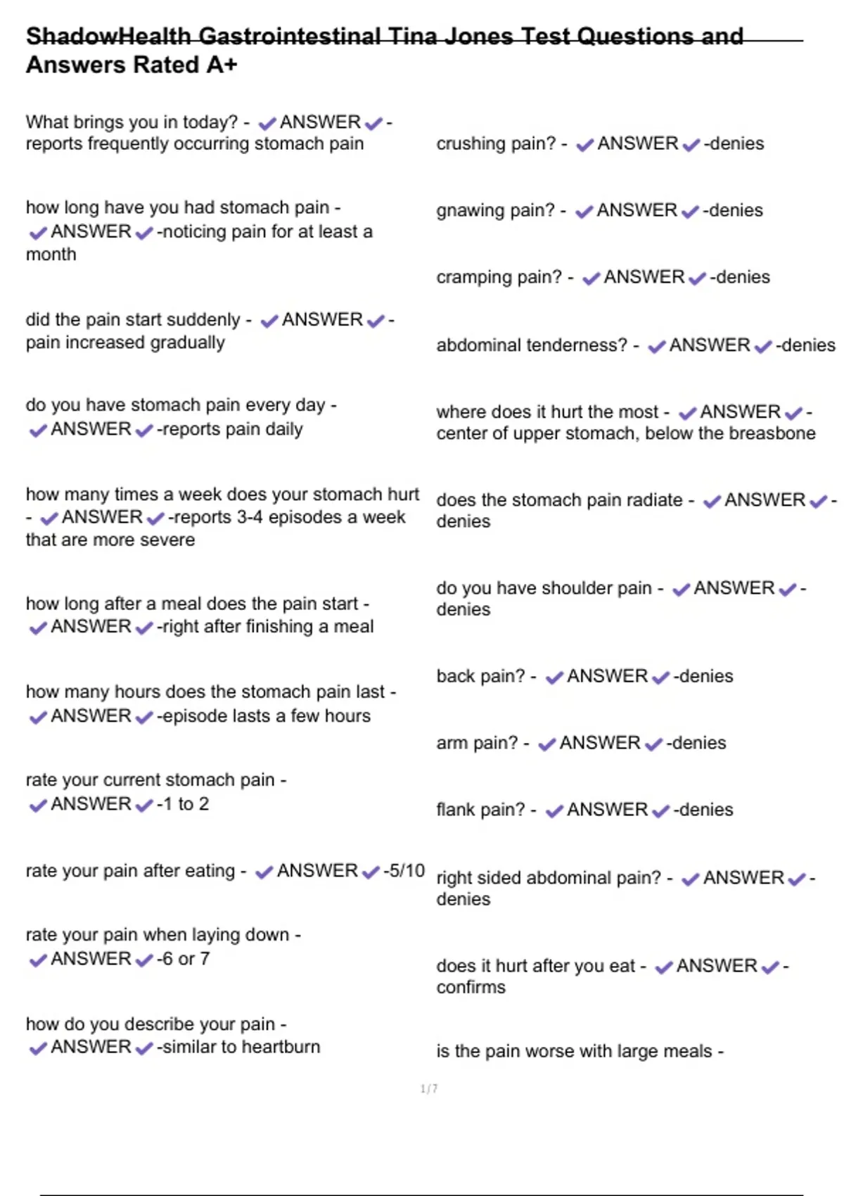 , ShadowHealth Gastrointestinal Tina Jones Test Questions and