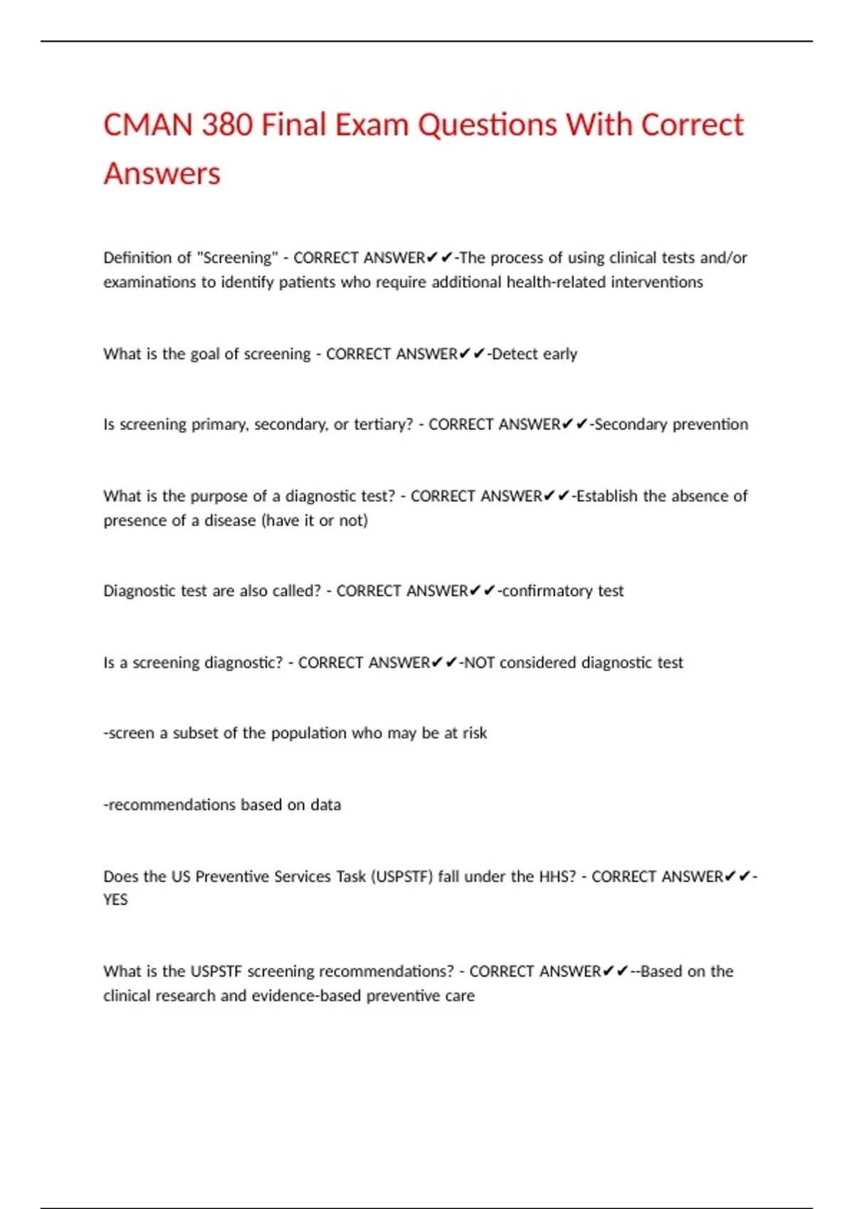 Is |a |screening |diagnostic? |- |CORRECT |ANSWER✔✔-NOT |considered |diagnostic |test |