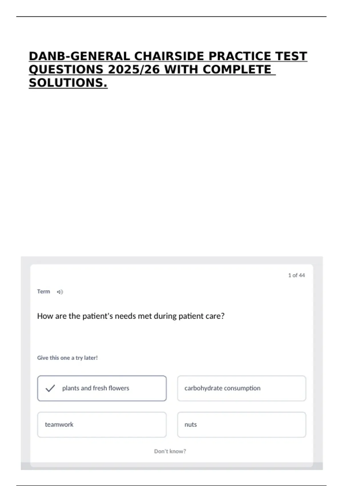 DANB-GENERAL CHAIRSIDE PRACTICE TEST QUESTIONS 2025/26 WITH COMPLETE SOLUTIONS.