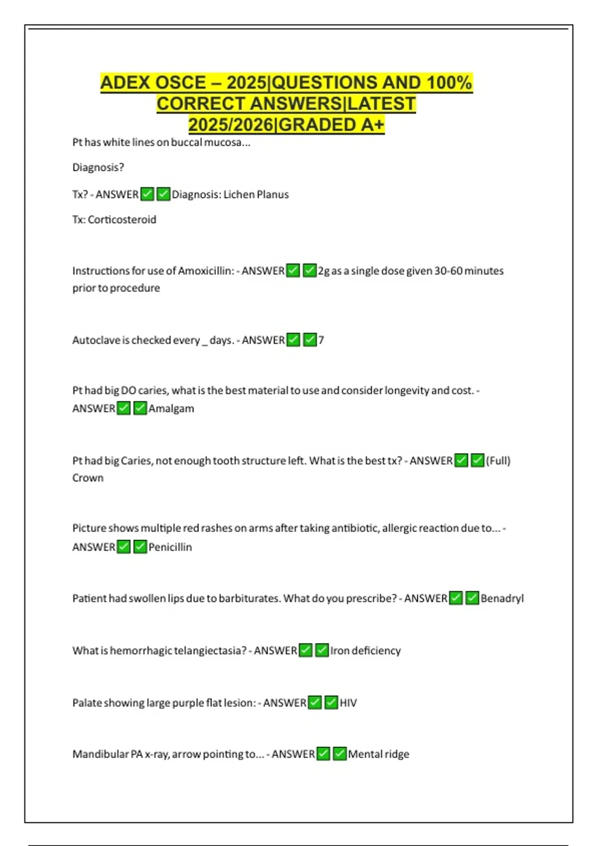 ADEX OSCE – 2025|QUESTIONS AND 100% CORRECT ANSWERS|LATEST 2025/2026|GRADED A+