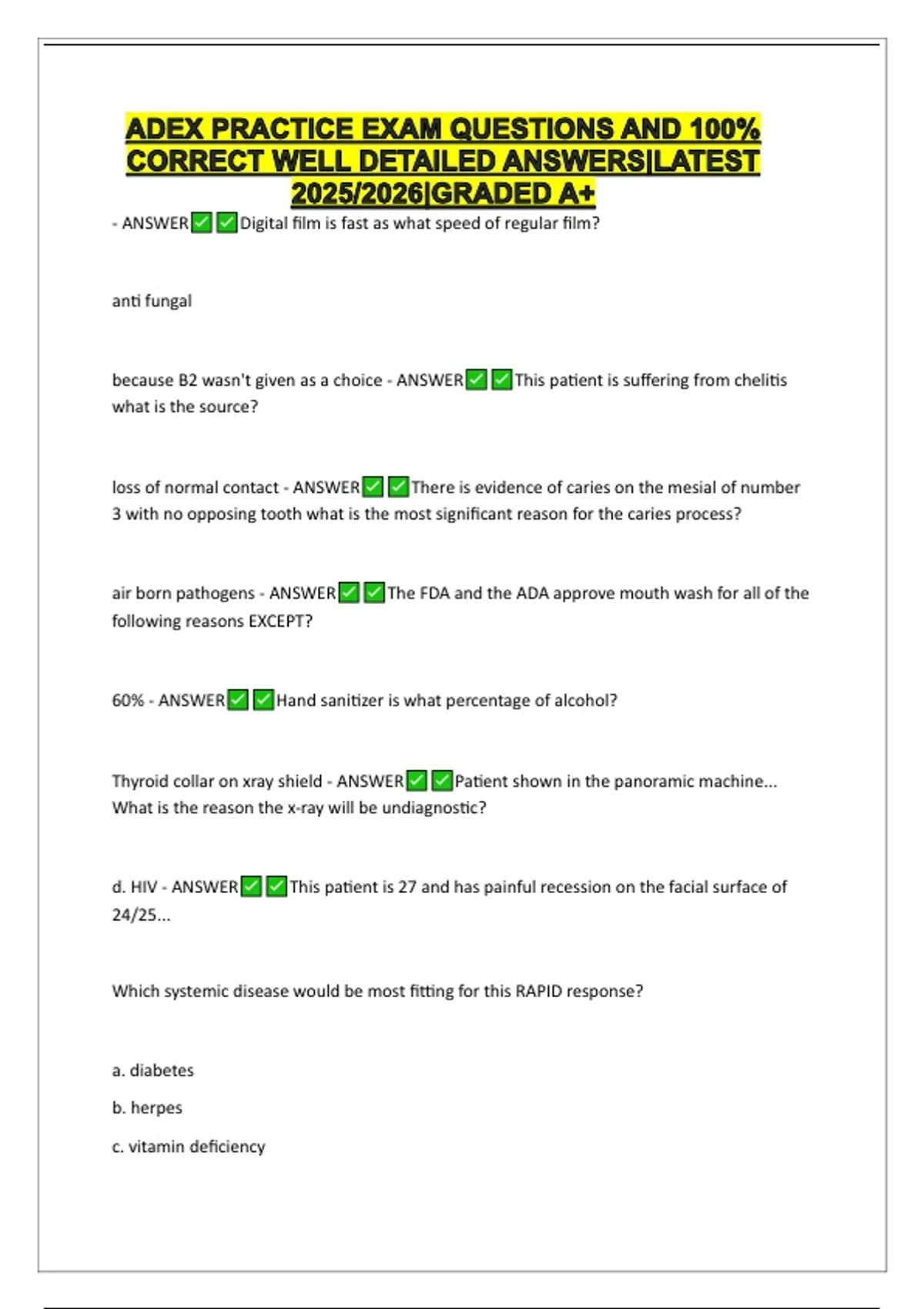 ADEX PRACTICE EXAM QUESTIONS AND 100% CORRECT WELL DETAILED ANSWERS|LATEST 2025/2026|GRADED A+