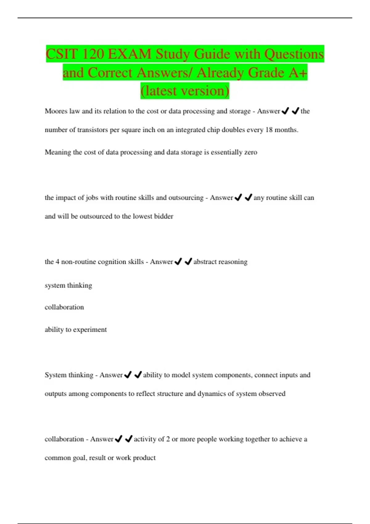 CSIT 120 EXAM Study Guide with Questions and Correct Answers/ Already Grade A+ (latest version)