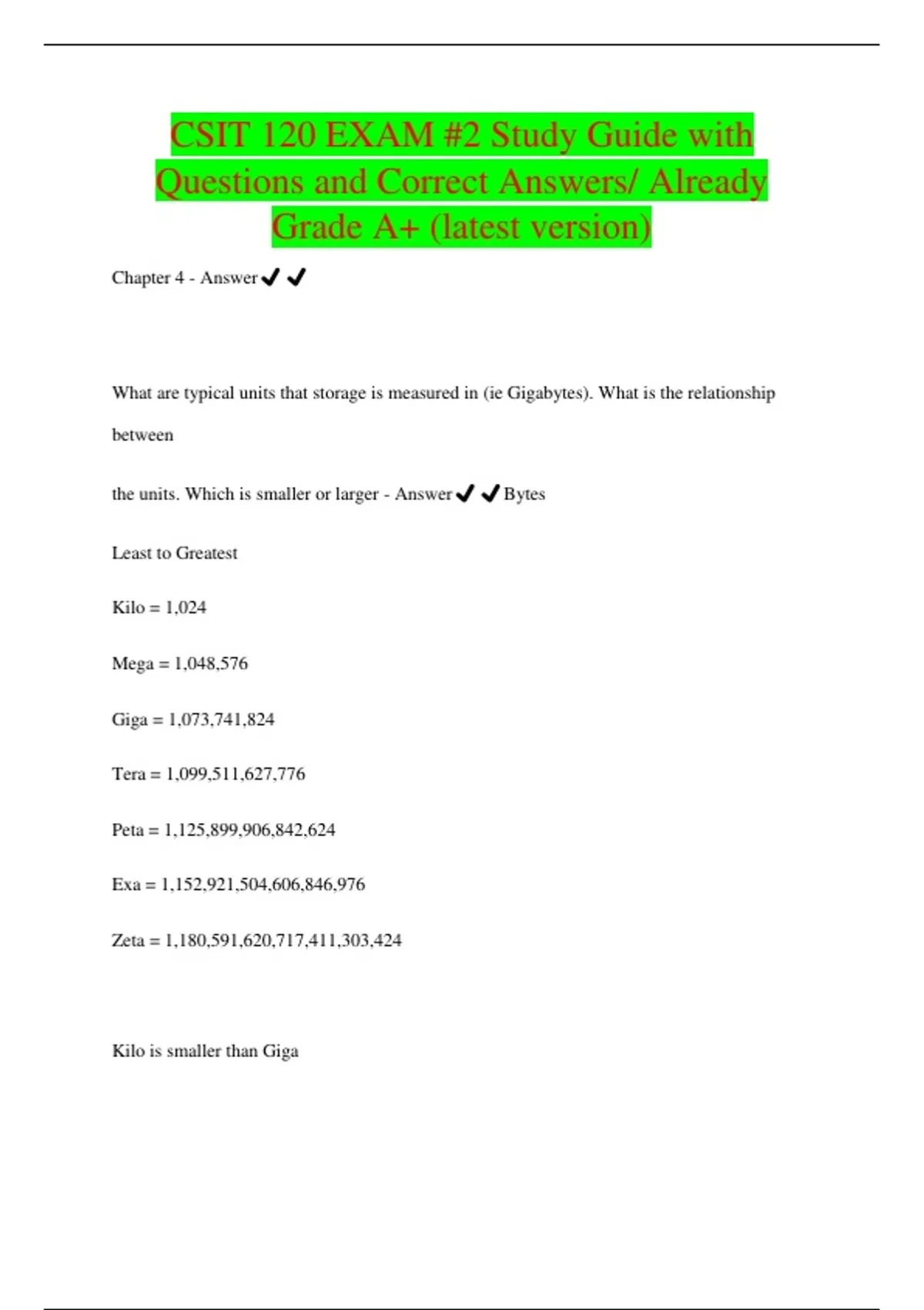 CSIT 120 EXAM #2 Study Guide with Questions and Correct Answers/ Already Grade A+ (latest version)