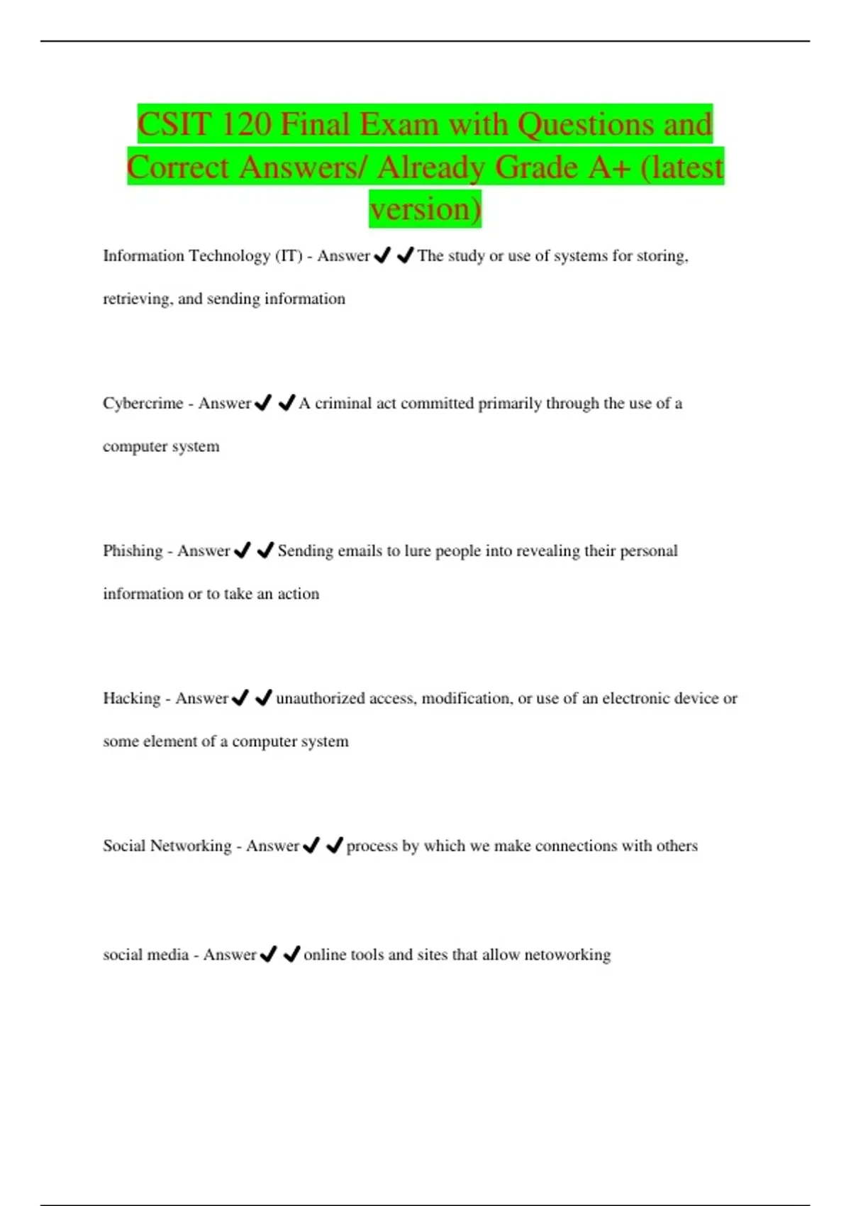 CSIT 120 Final Exam with Questions and Correct Answers/ Already Grade A+ (latest version)