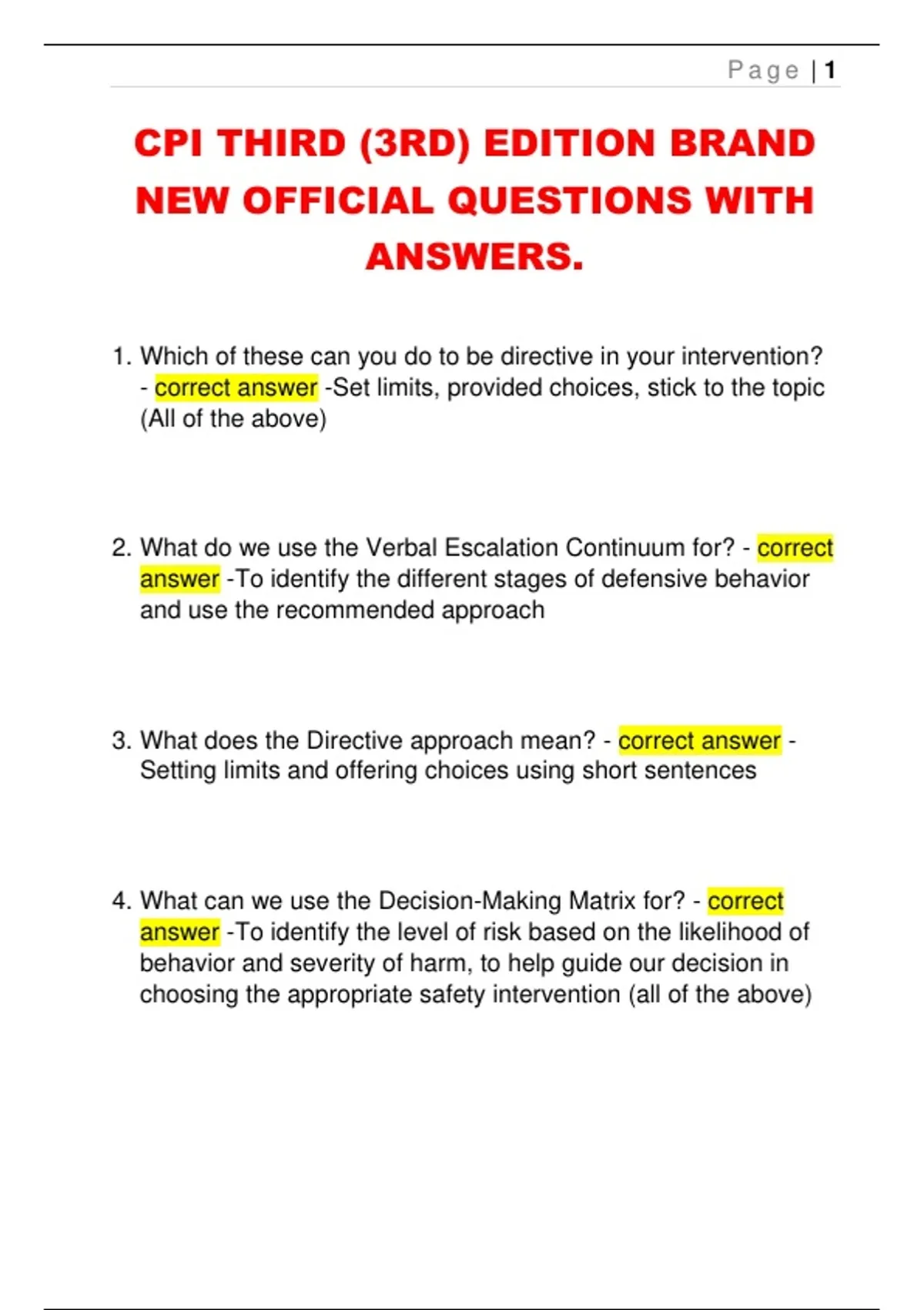 2. What do we use the Verbal Escalation Continuum for? - correct