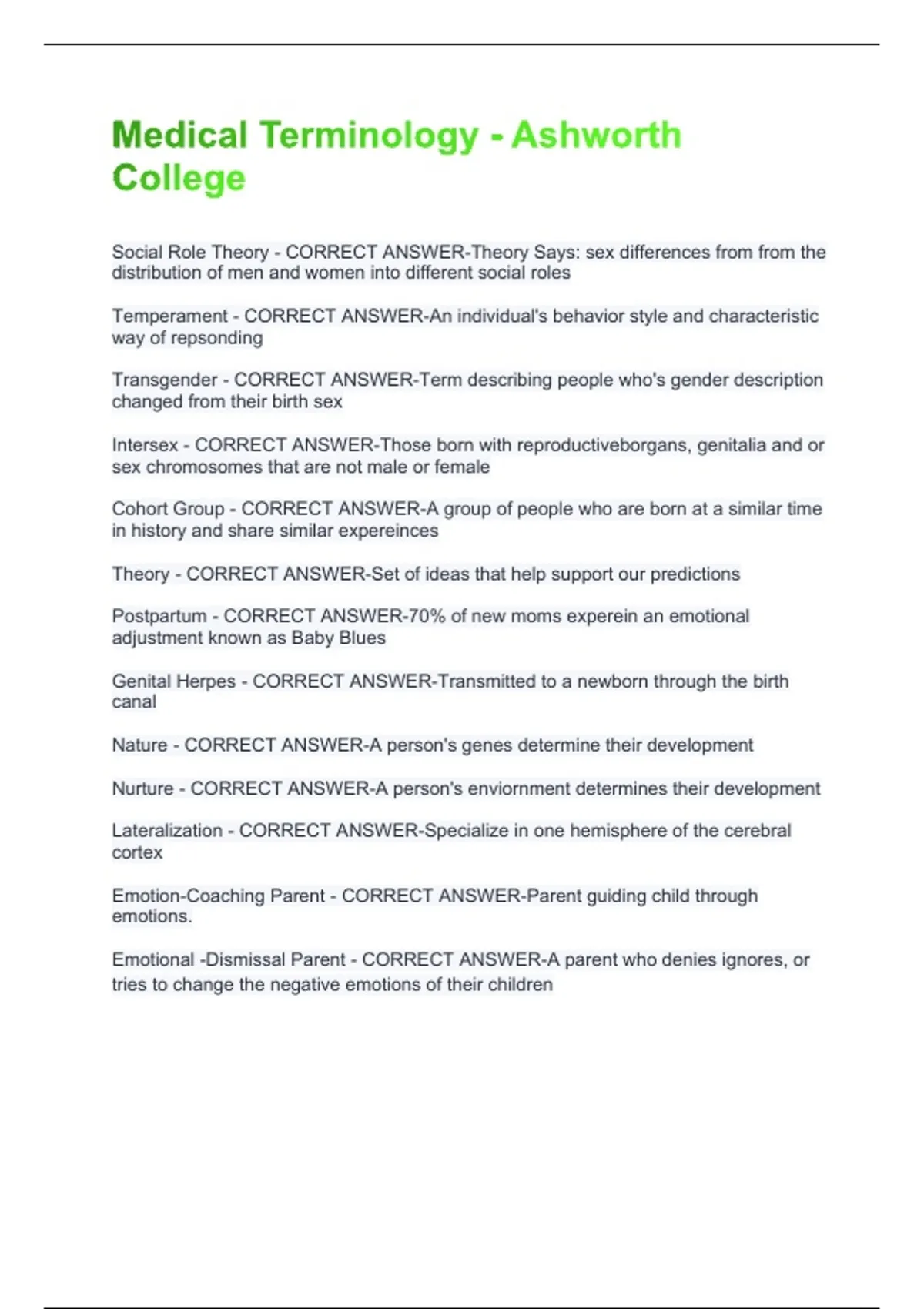 Transgender - CORRECT ANSWER-Term describing people who's gender description