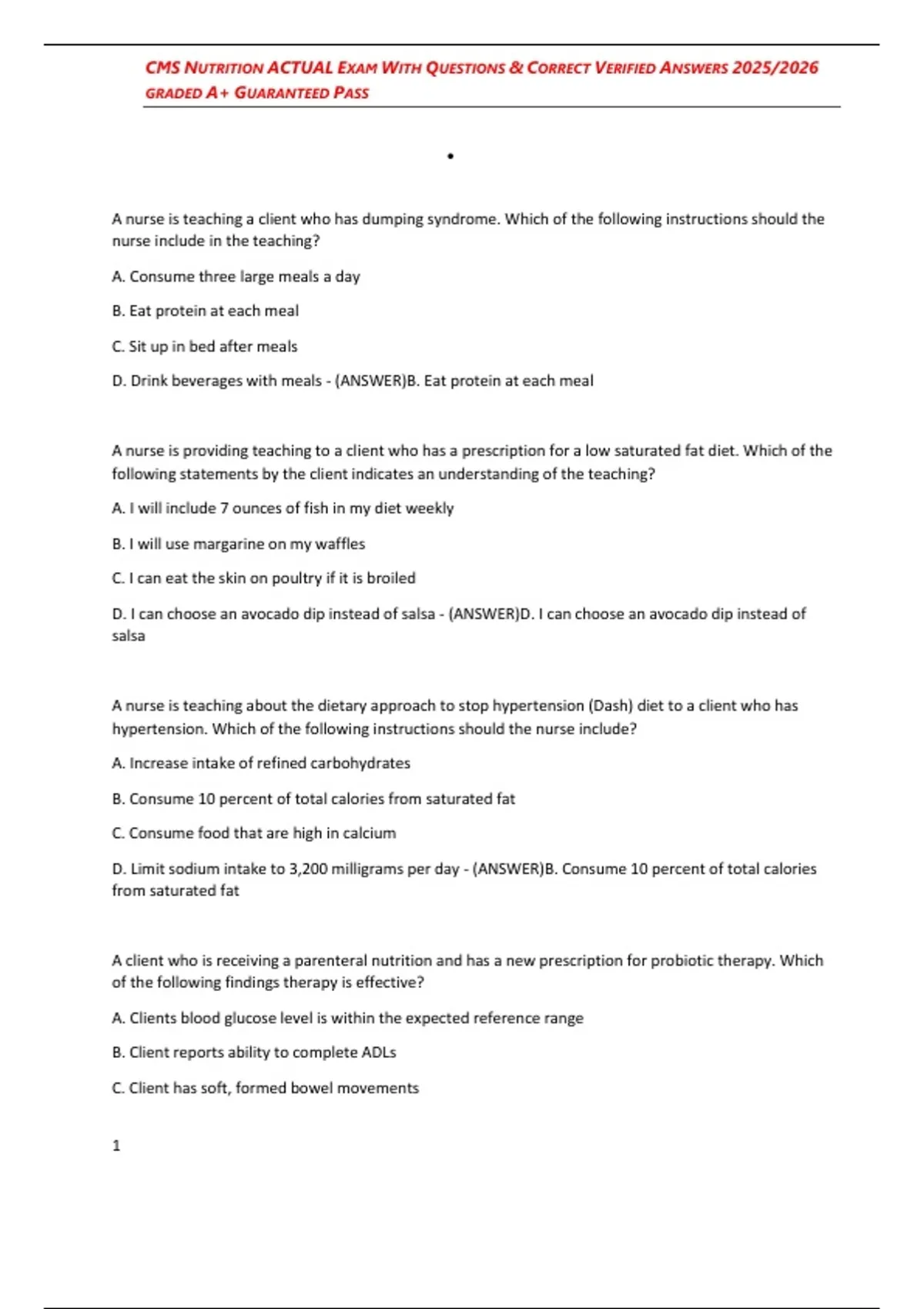 D. Limit sodium intake to 3,200 milligrams per day - (ANSWER)B. Consume 10 percent of total calories