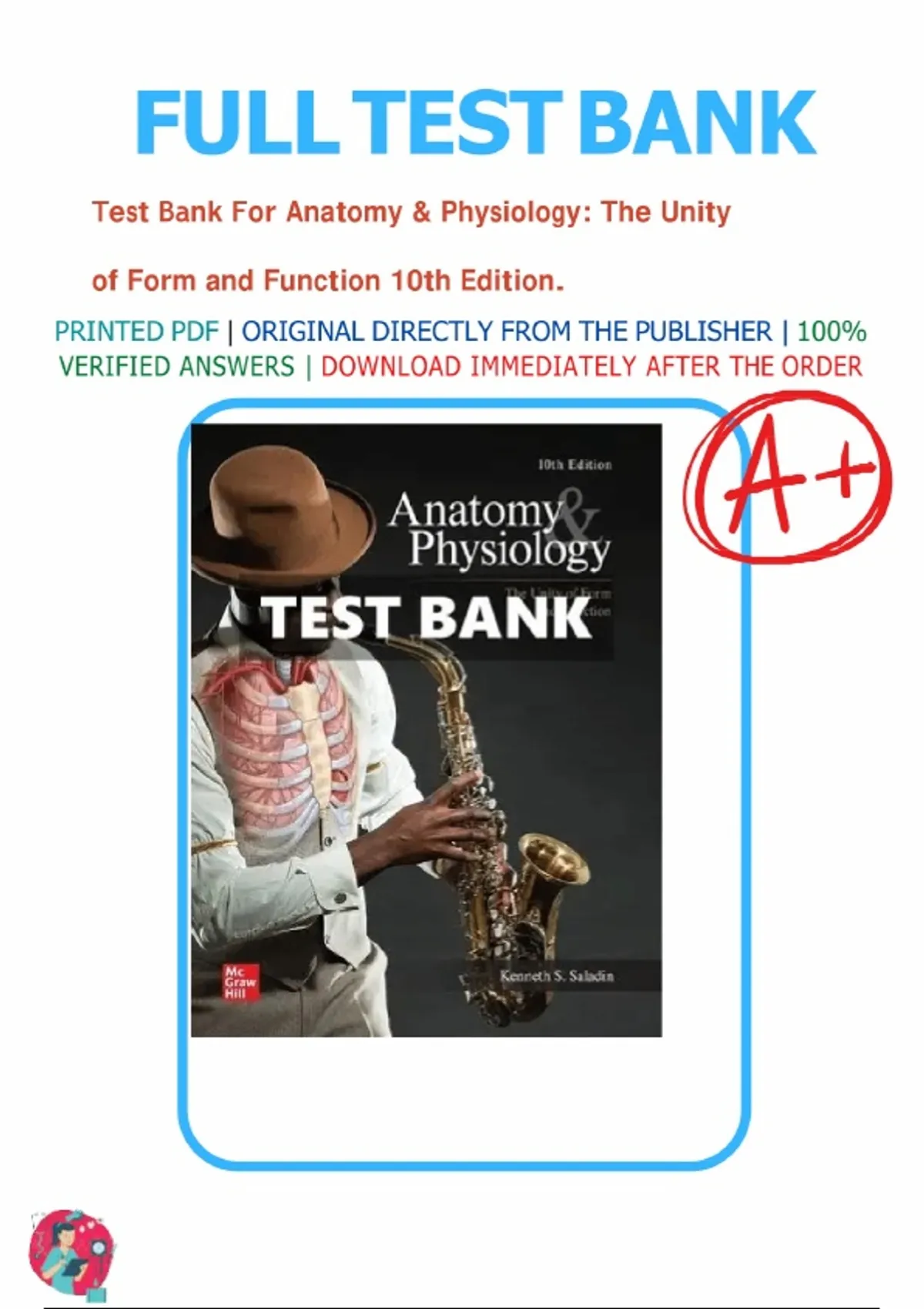 Test bank for Anatomy & Physiology: The Unity of Form and Function 10th Edition by Saladin.||All verified chapters 1-29 covered.