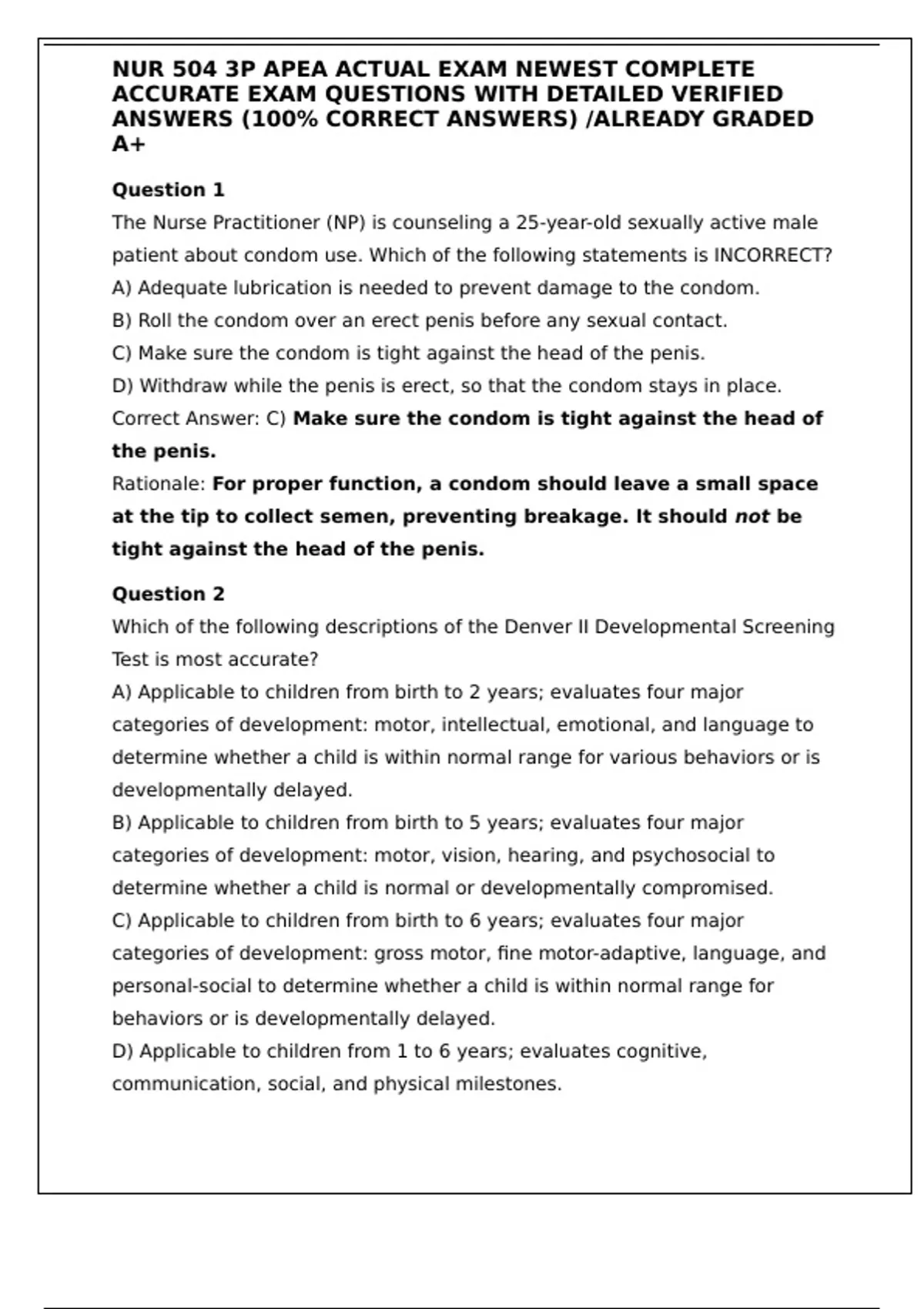 NUR 504 3P APEA ACTUAL EXAM NEWEST COMPLETE ACCURATE EXAM QUESTIONS WITH DETAILED VERIFIED ANSWERS (100% CORRECT ANSWERS) /ALREADY GRADED A+