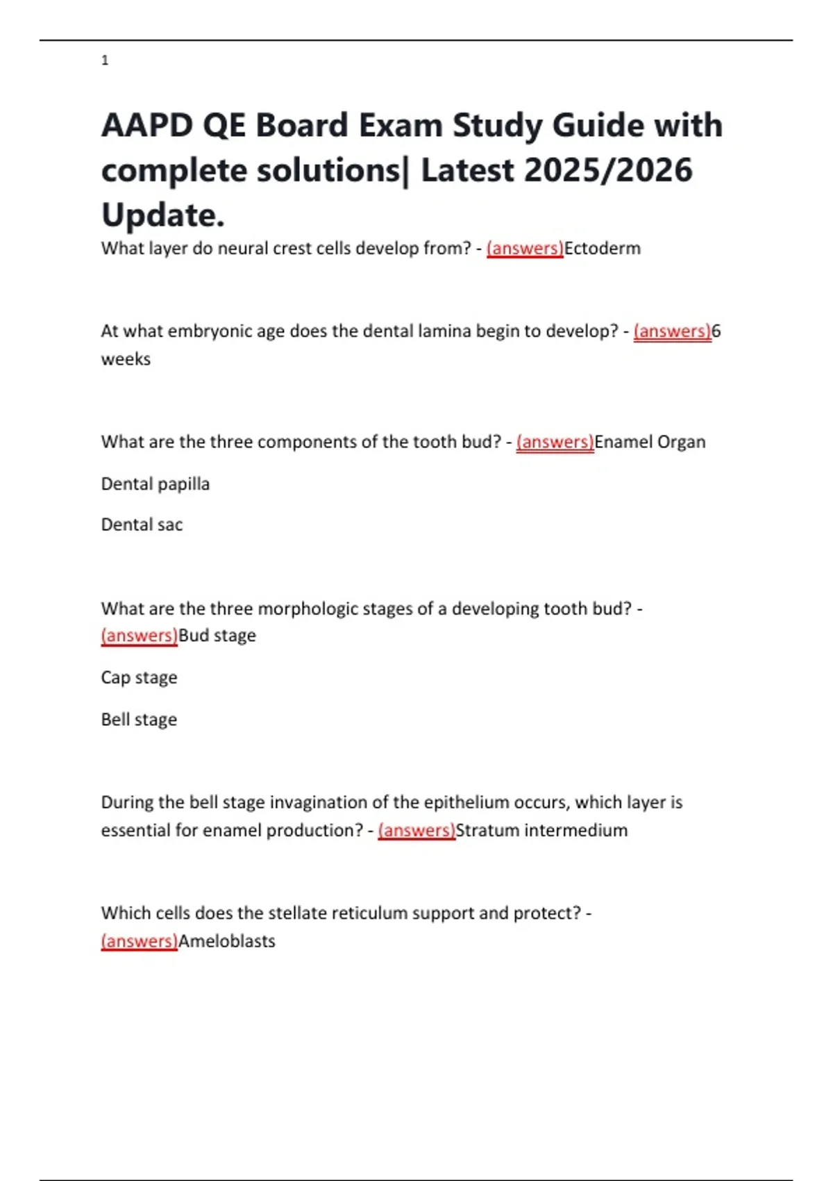 AAPD QE Board Exam Study Guide with complete solutions| Latest 2025/2026 Update.