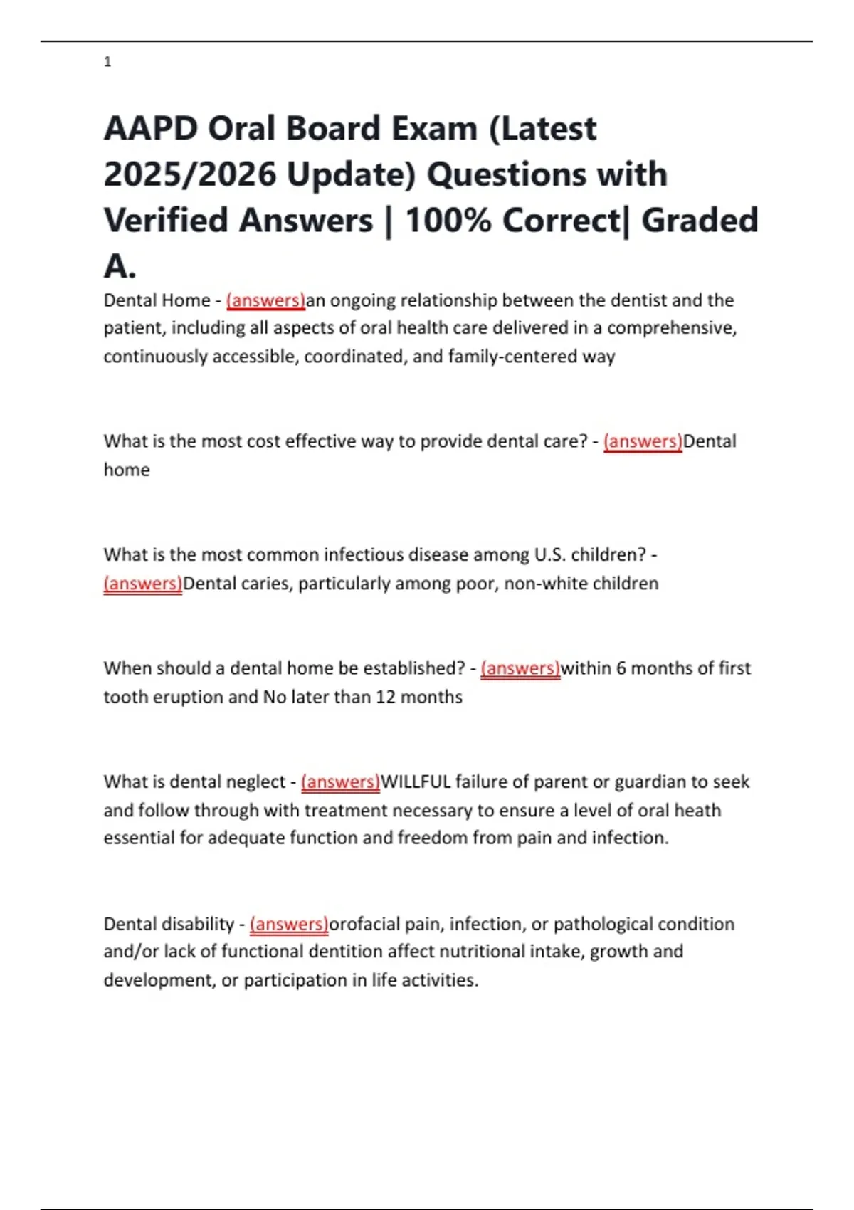 AAPD Oral Board Exam (Latest 2025/2026 Update) Questions with Verified Answers | 100% Correct| Graded A.
