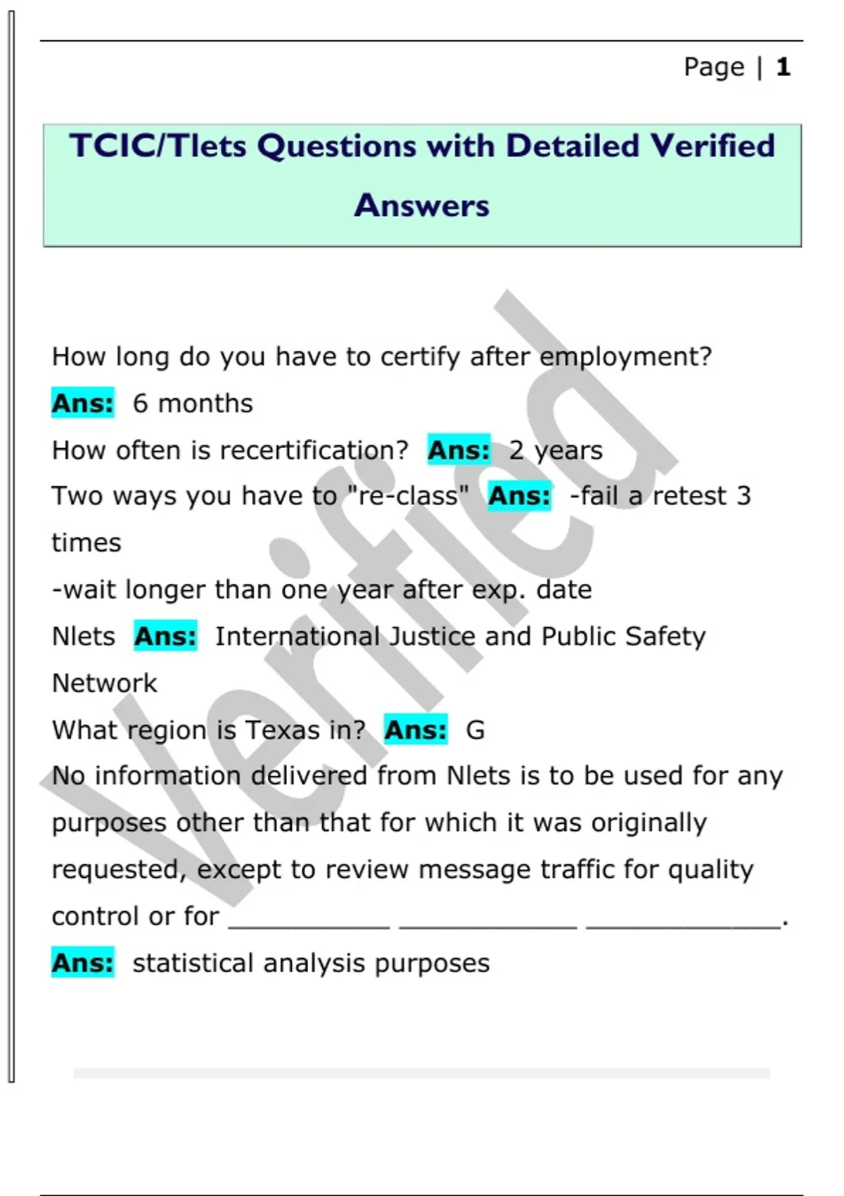 TCIC/Tlets Questions with Detailed Verified