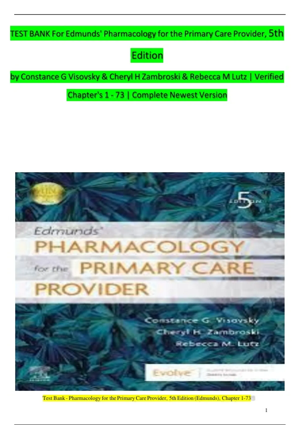 TEST BANK For Edmunds' Pharmacology for the Primary Care Provider, 5th