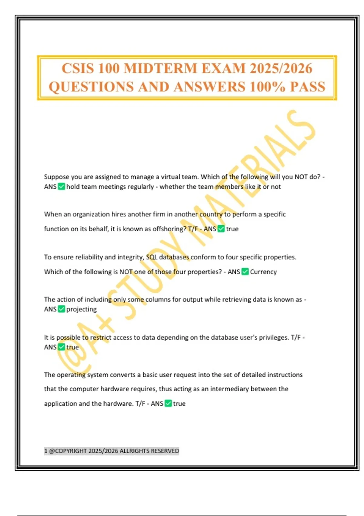 QUESTIONS AND ANSWERS 100% PASS