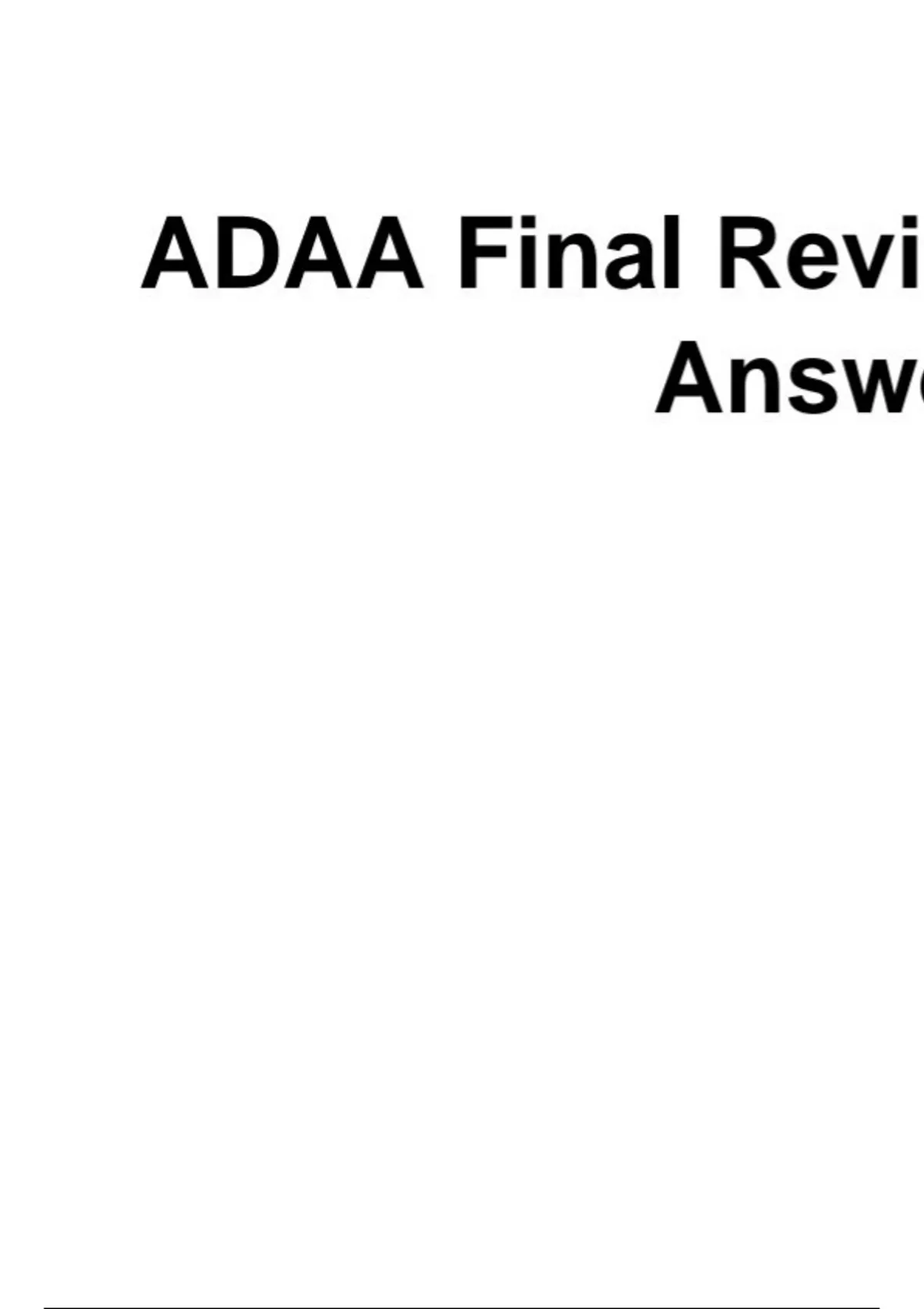 ADAA Final Exam Review 2 - C Questions And Verified Answers With Rationale
