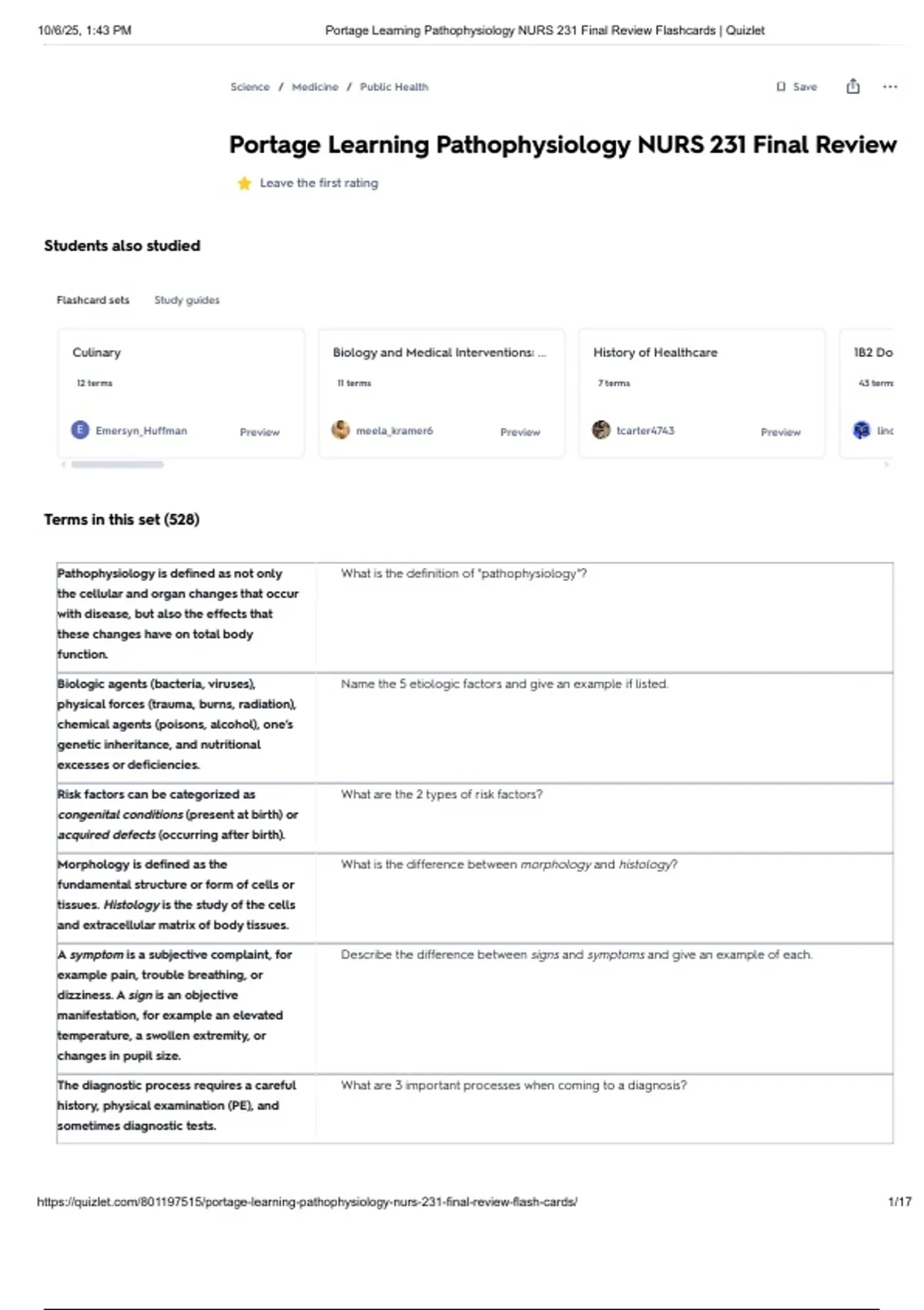 , 10/6/25, 1:43 PM Portage Learning Pathophysiology NURS 231 Final Review Flashcards | Quizlet