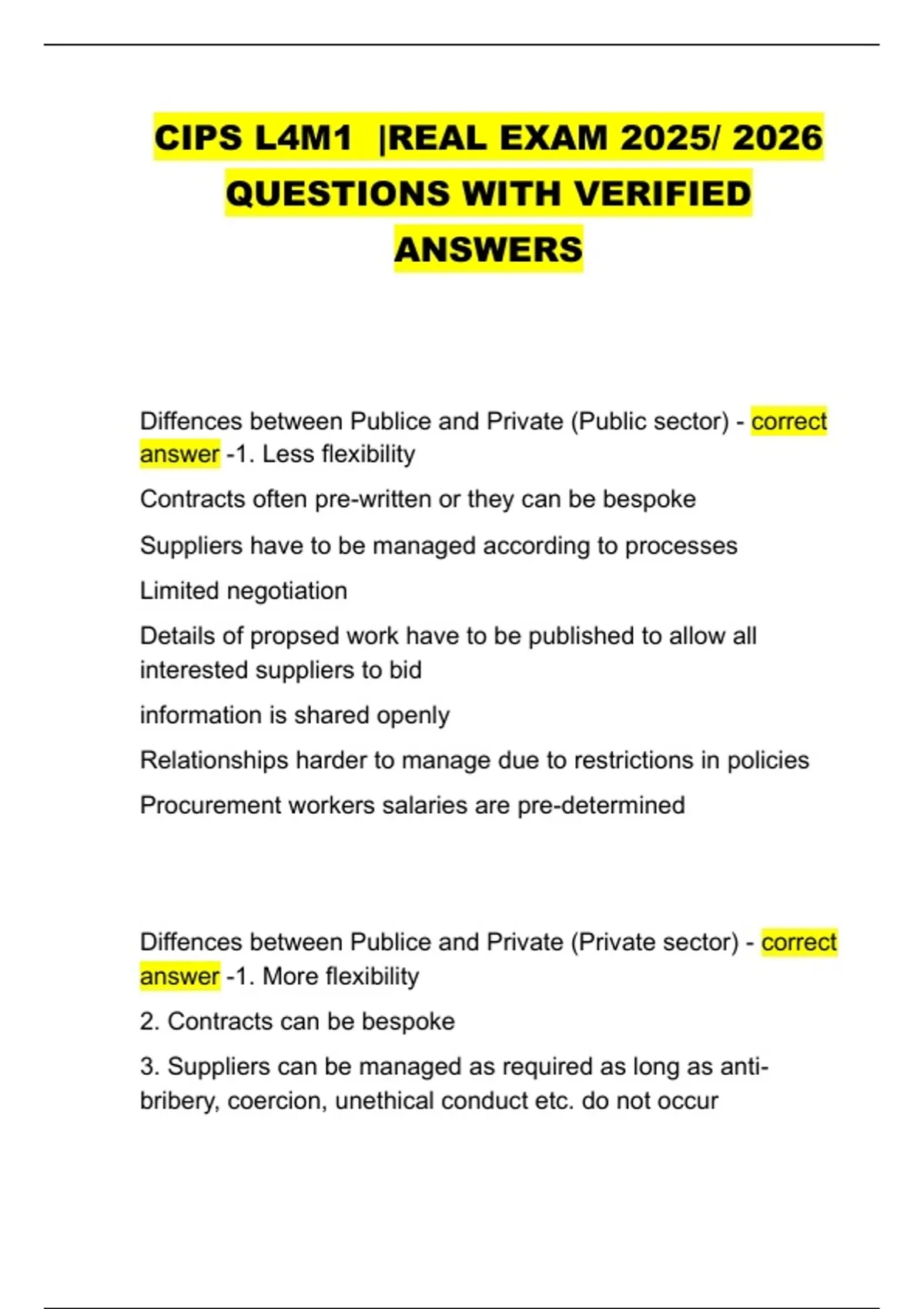 CIPS L4M1 |REAL EXAM 2025/ 2026 QUESTIONS WITH VERIFIED ANSWERS