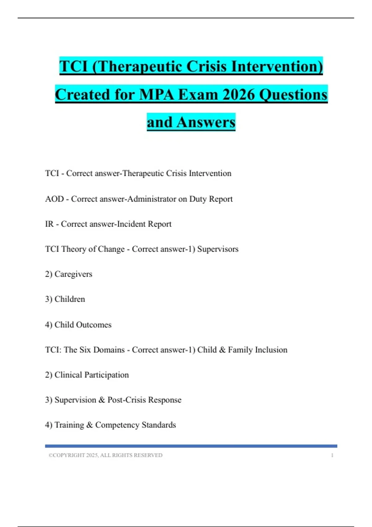 TCI (Therapeutic Crisis Intervention) Created for MPA Exam 2026 Questions and Answers