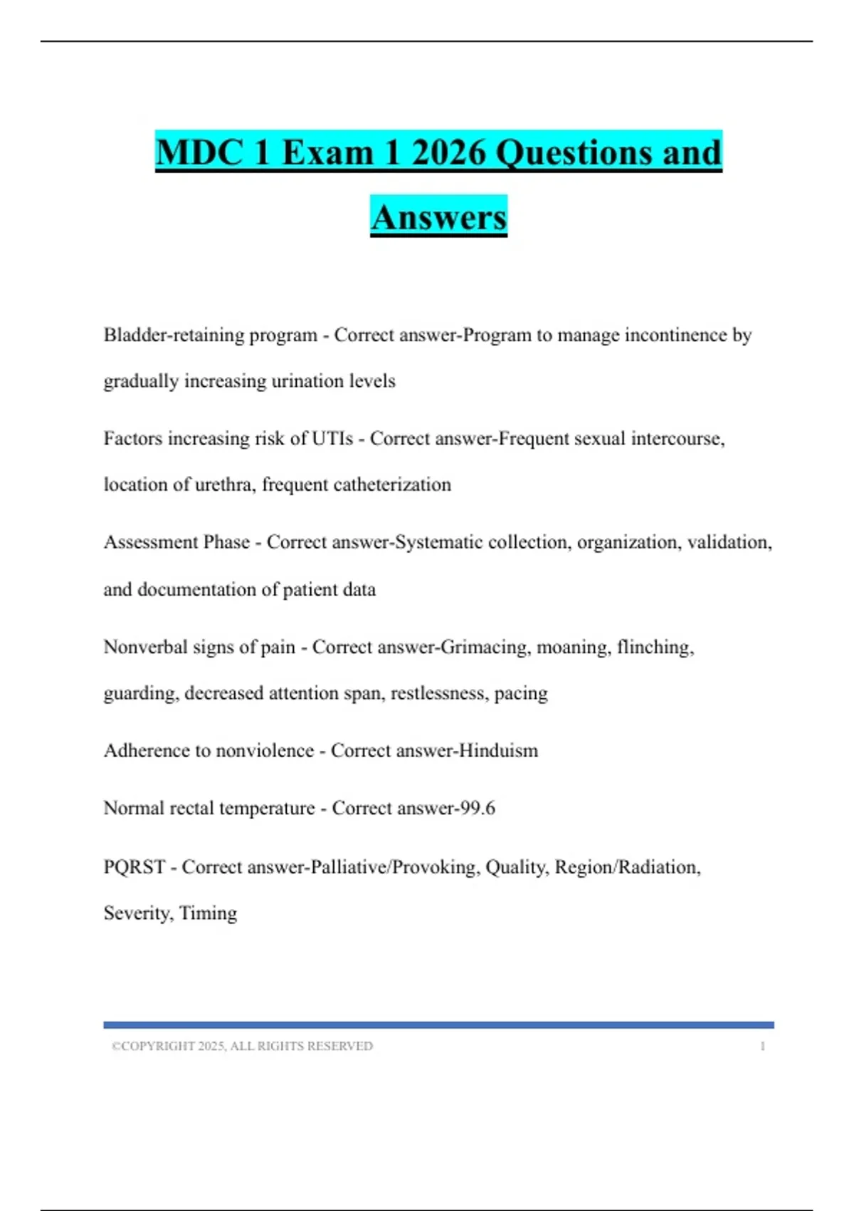 MDC 1 Exam 1 2026 Questions and Answers