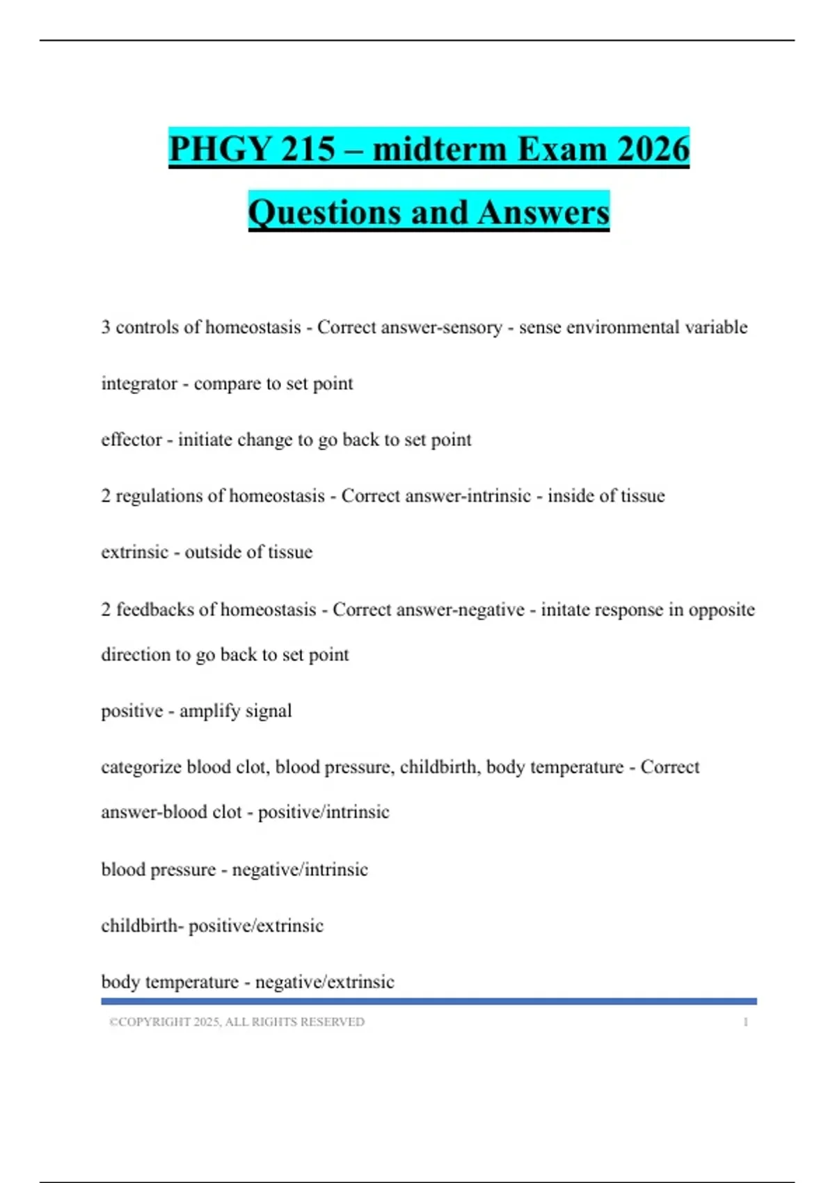 PHGY 215 – midterm Exam 2026 Questions and Answers
