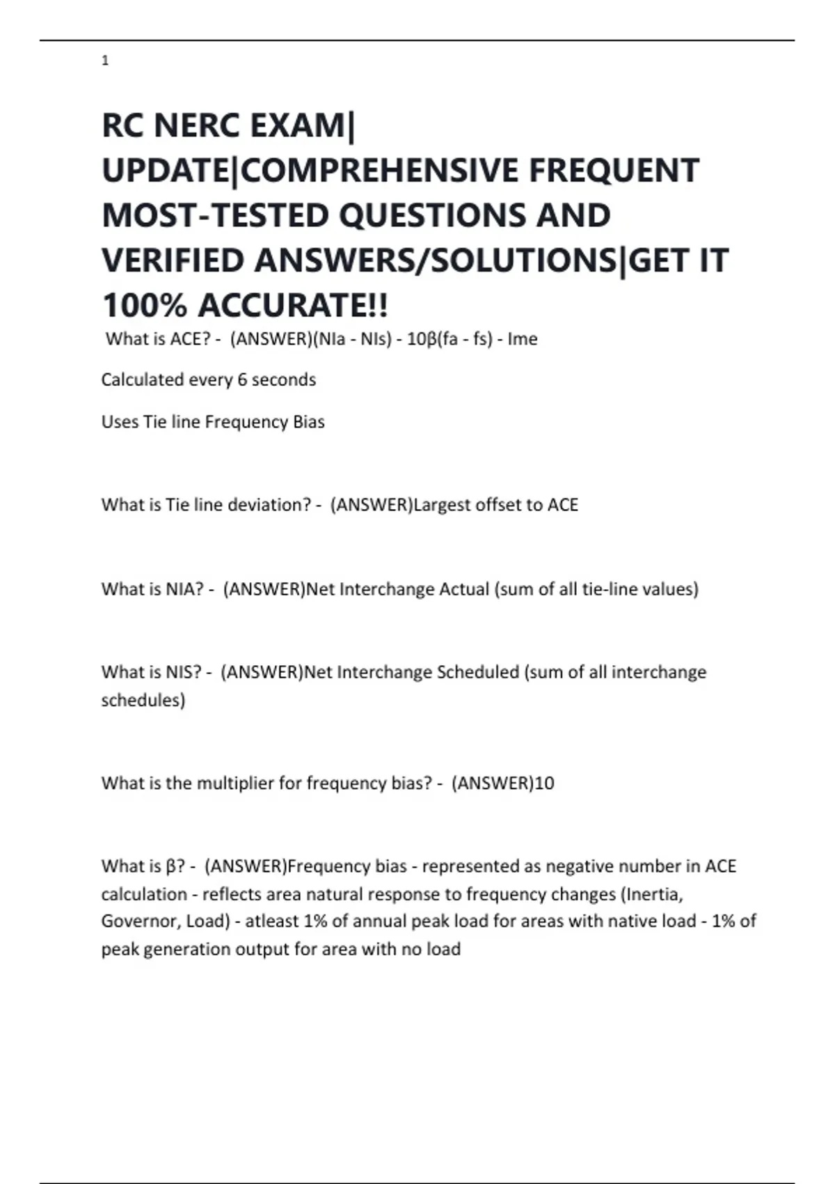 What is Tie line deviation? - (ANSWER)Largest offset to ACE