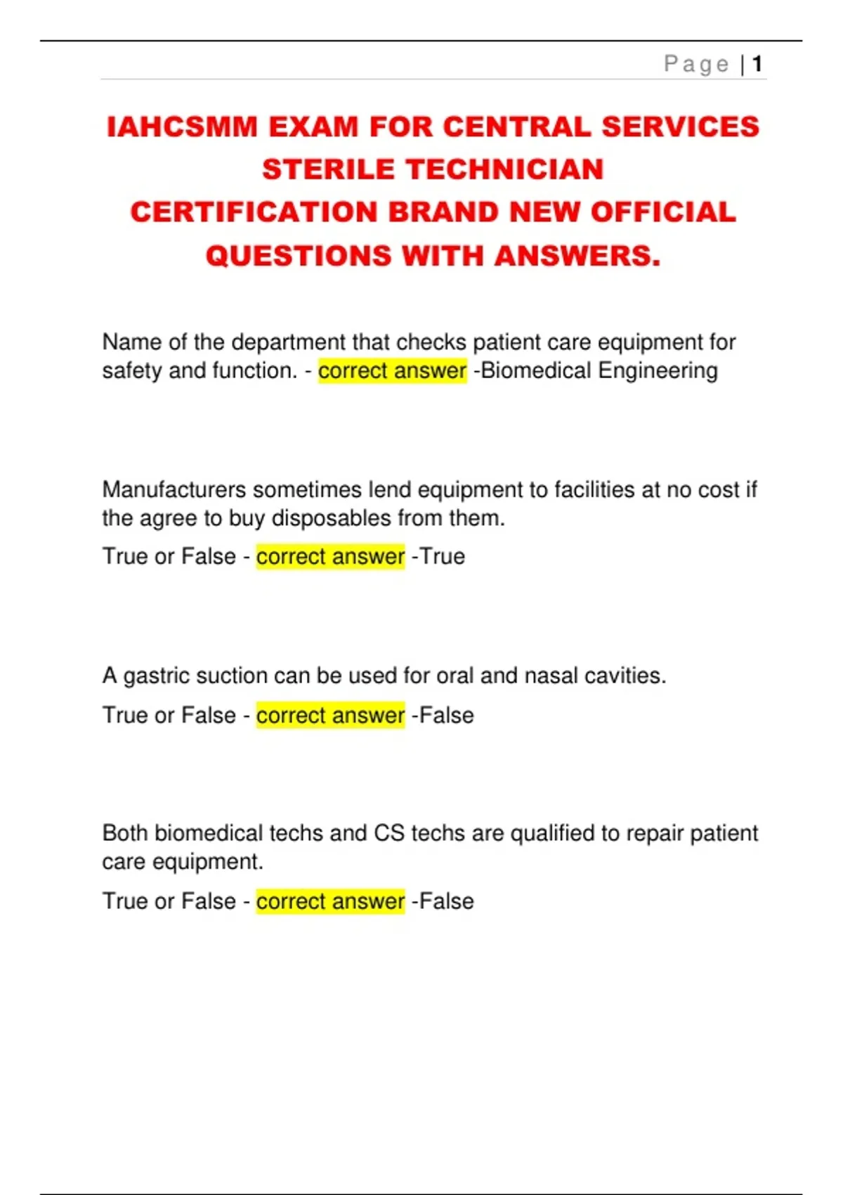 IAHCSMM EXAM FOR CENTRAL SERVICES STERILE TECHNICIAN CERTIFICATION BRAND NEW OFFICIAL QUESTIONS WITH ANSWERS.