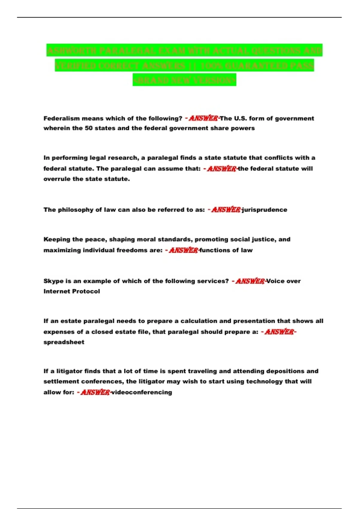 ASHWORTH PARALEGAL EXAM WITH ACTUAL QUESTIONS AND