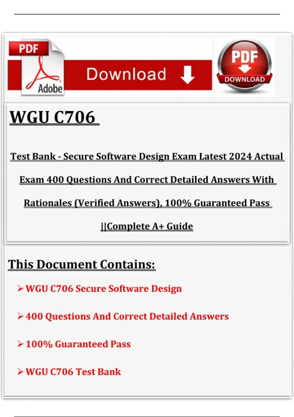 , WGU MASTER'S COURSE C706 Test Bank - Secure Software