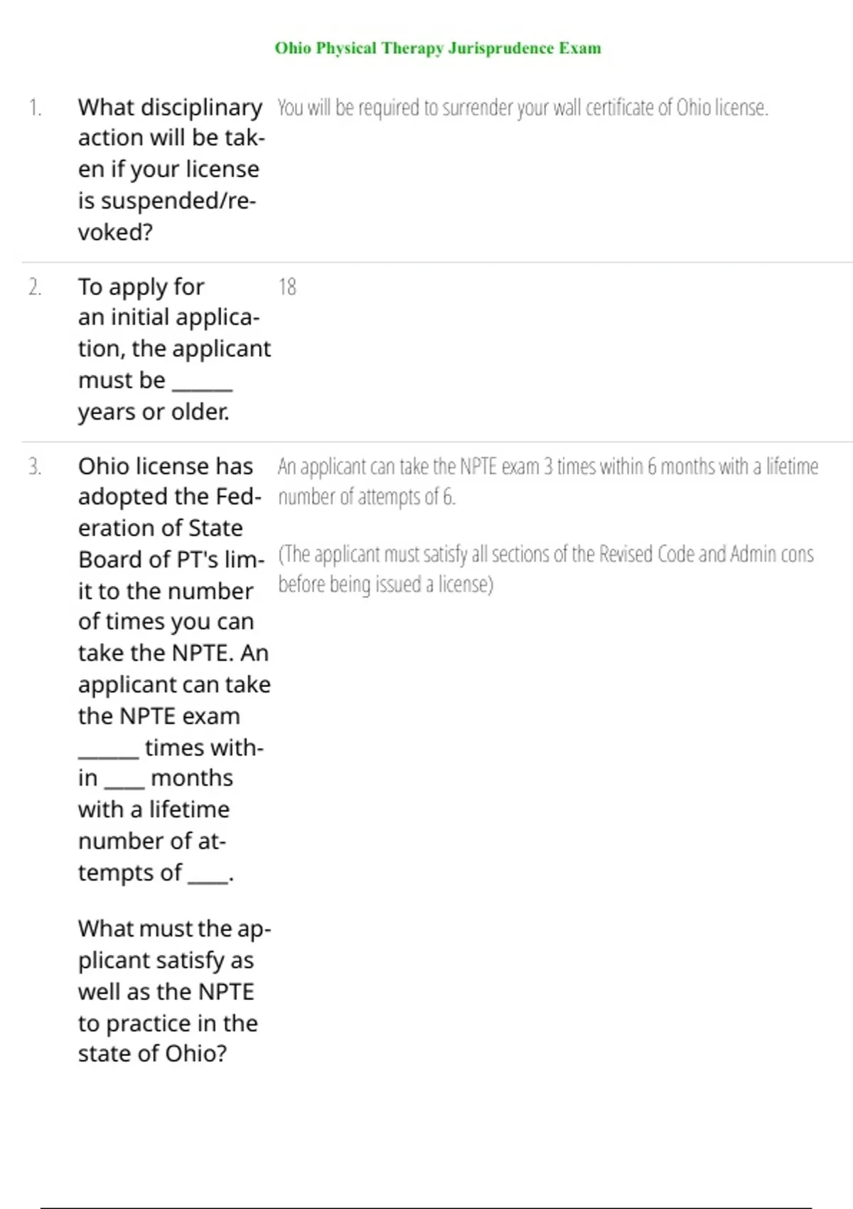 3. Ohio license has An applicant can take the NPTE exam 3 times within 6 months with a lifetime