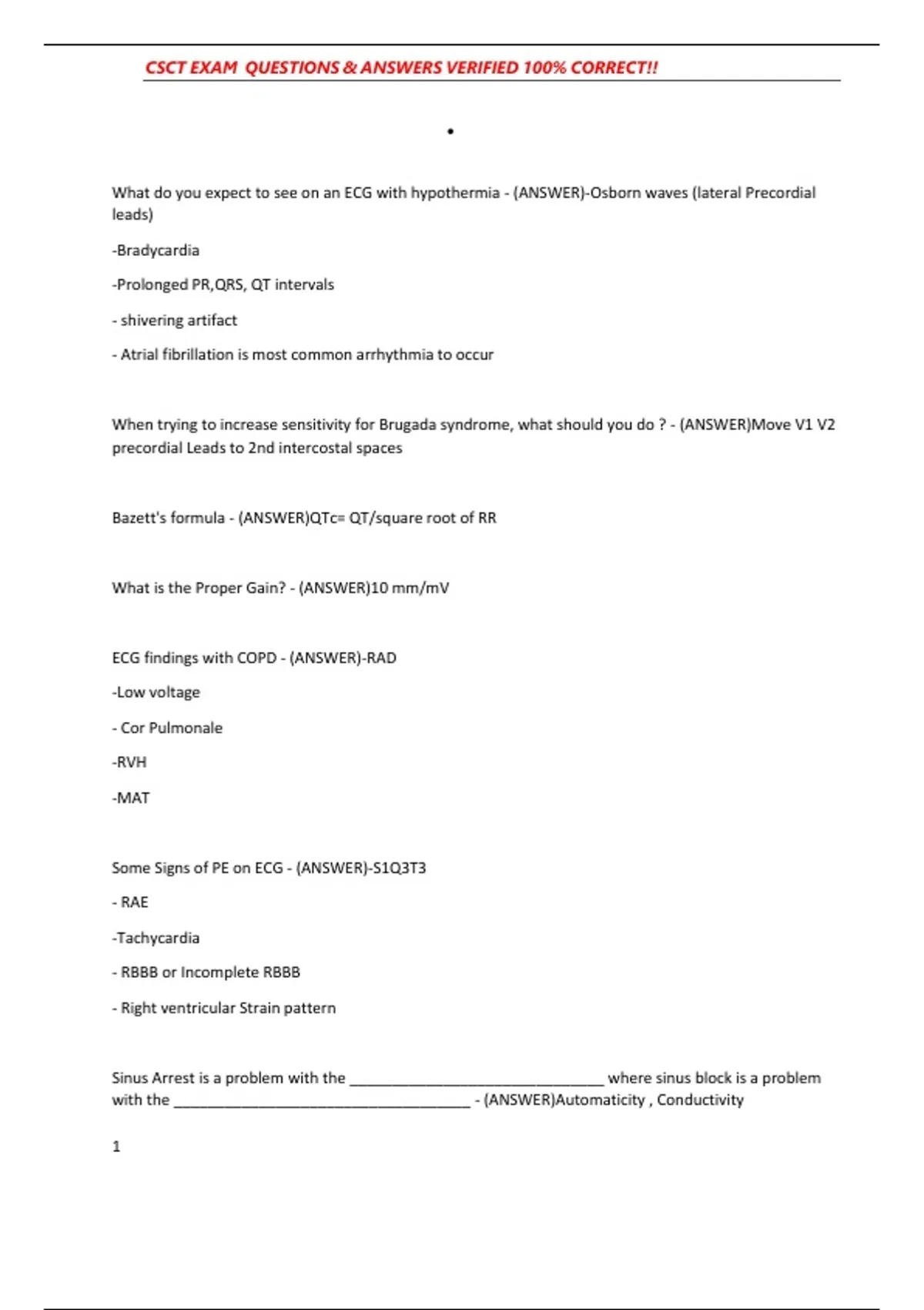 , CSCT EXAM QUESTIONS & ANSWERS VERIFIED 100% CORRECT!!