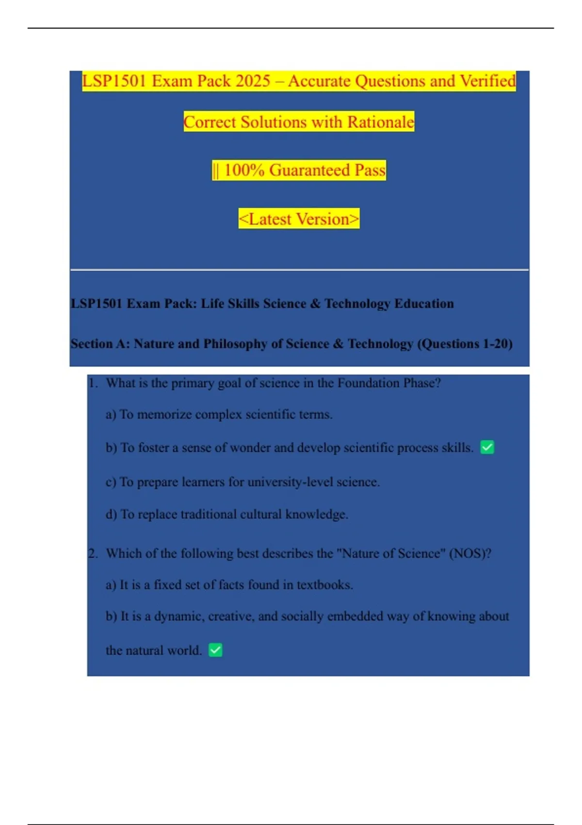 LSP1501 Exam Pack: Life Skills Science & Technology Education